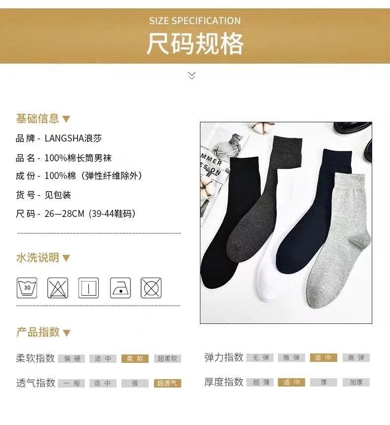 롱샤 양말 남성용 순면 양말 스타킹 가을과 겨울 높은 튜브 땀 흡수 탈취제 두꺼운 비즈니스 크메르 양말스토어 가기