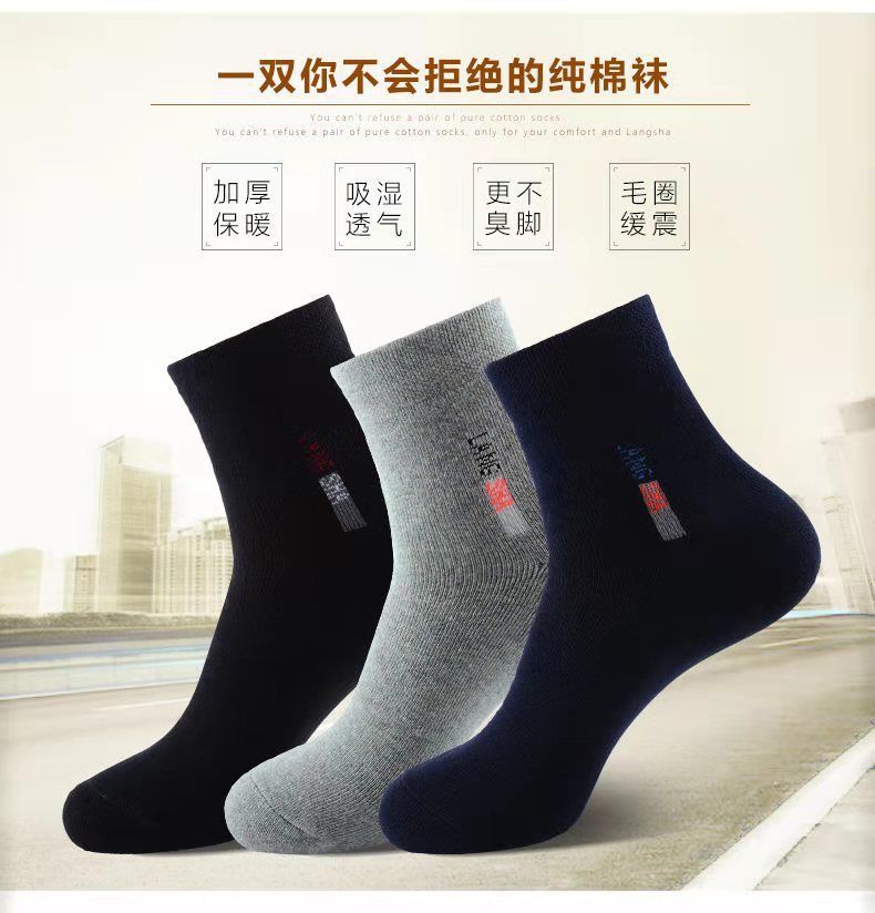 [랑샤 브랜드 특별 제공] 양말 남자 면 가을과 겨울 두꺼운 테리 양말 기모 따뜻한 양말