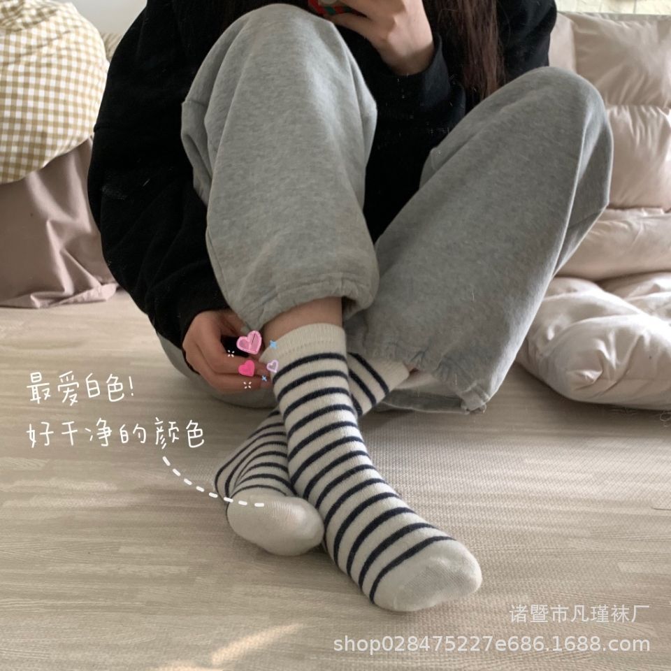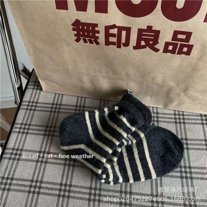 가을과 겨울 새로운 두꺼운 따뜻한 토끼 울 여성 양말 일본식 스트라이프 따뜻한 양말 플러시 부드러운 밀랍 면 양말 여성용스토어 가기