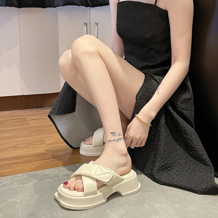 두꺼운 밑창 슬리퍼 여성용 2023 봄과 여름 새로운 패션 크로스 머핀 캐주얼 한 단어 샌들