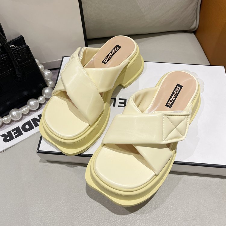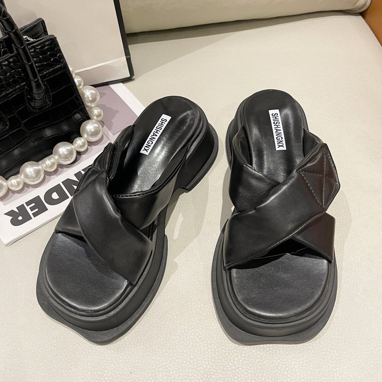 두꺼운 밑창 슬리퍼 여성용 2023 봄과 여름 새로운 패션 크로스 머핀 캐주얼 한 단어 샌들스토어 가기