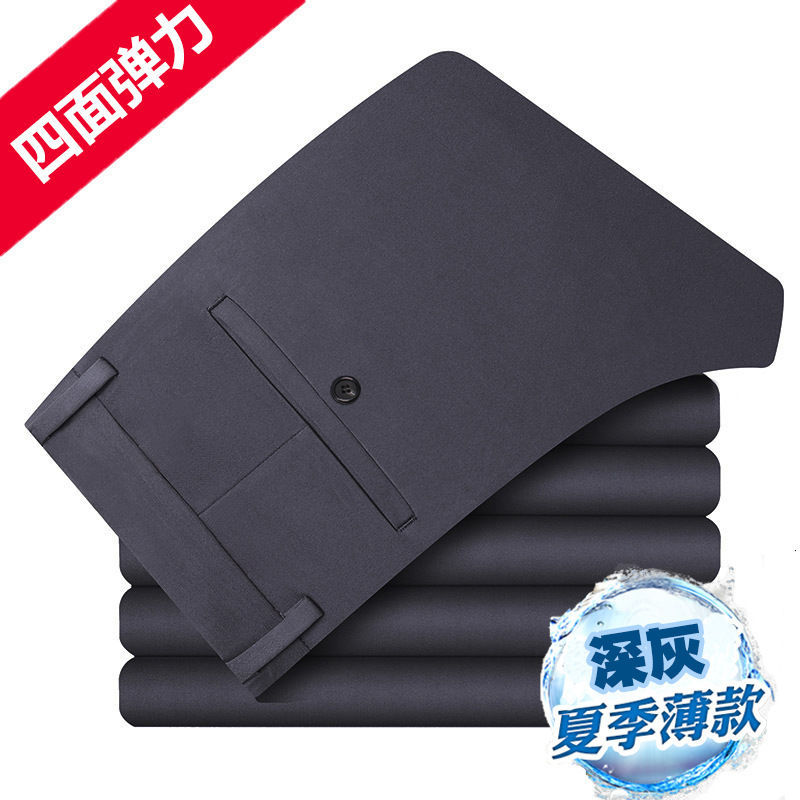 해외 전자 상거래 도매 남성 여름 얇은 바지 느슨한 스트레이트 비즈니스 바지 아이스 실크 스트레치 바지스토어 가기