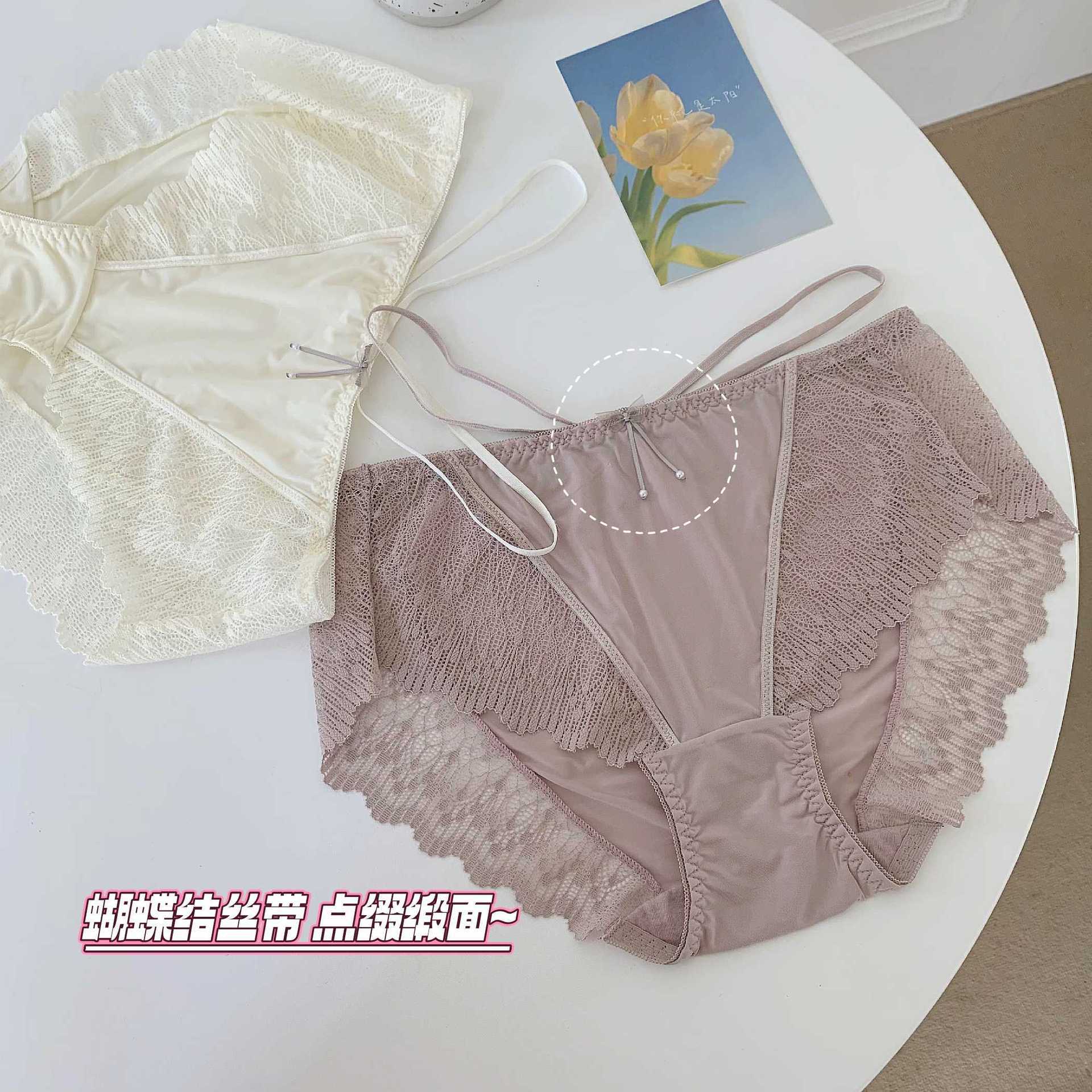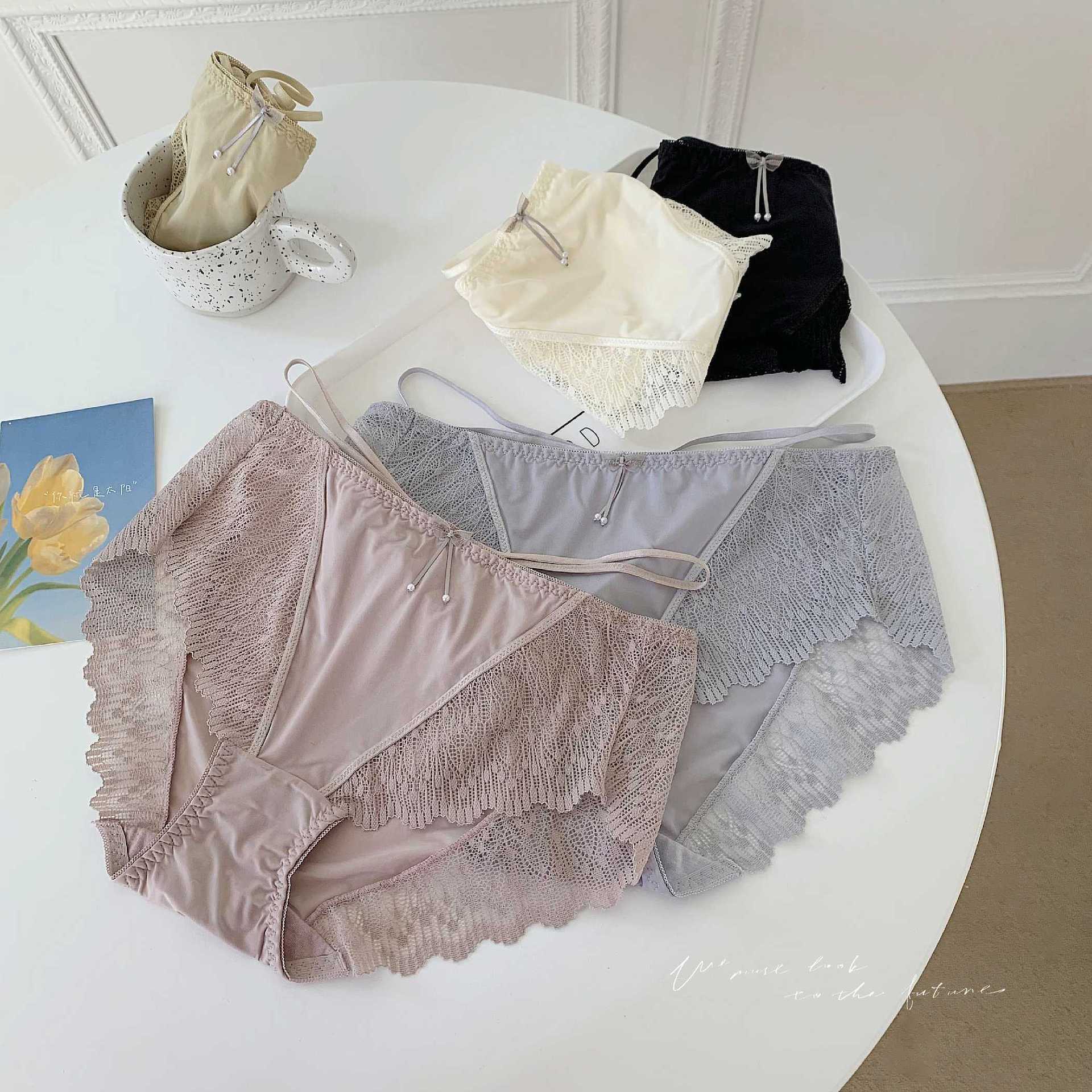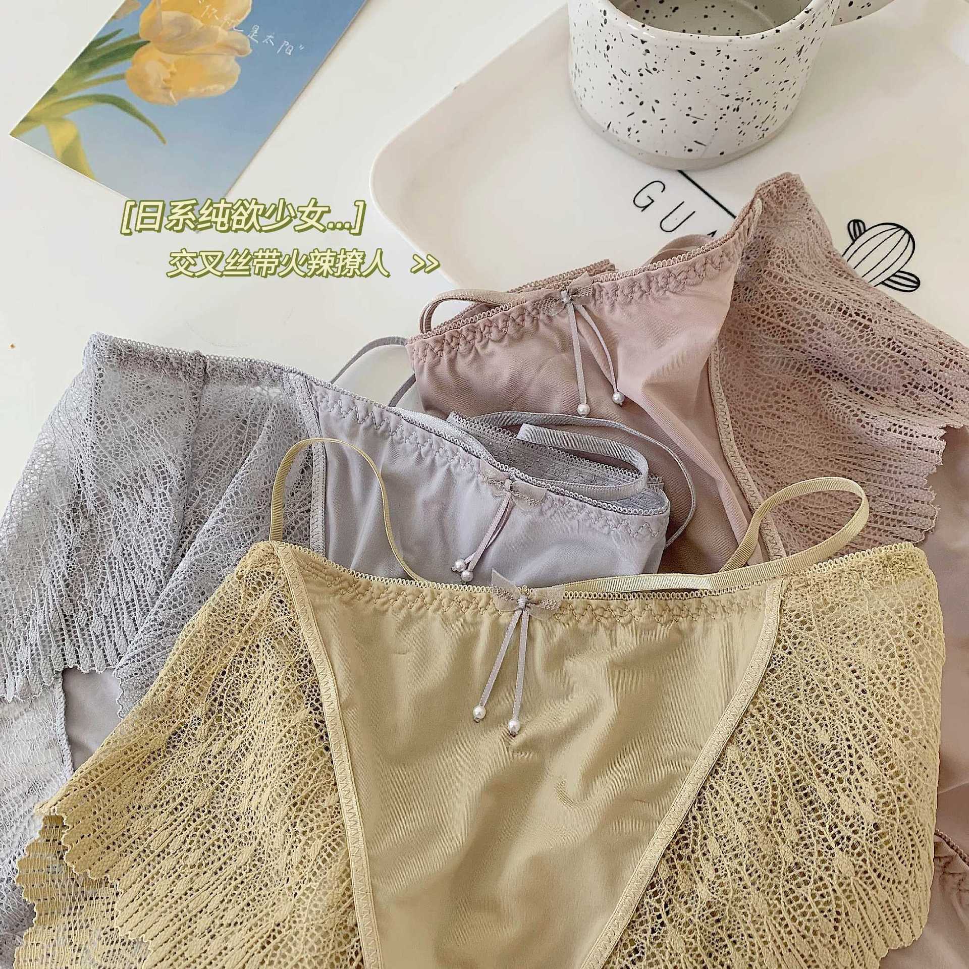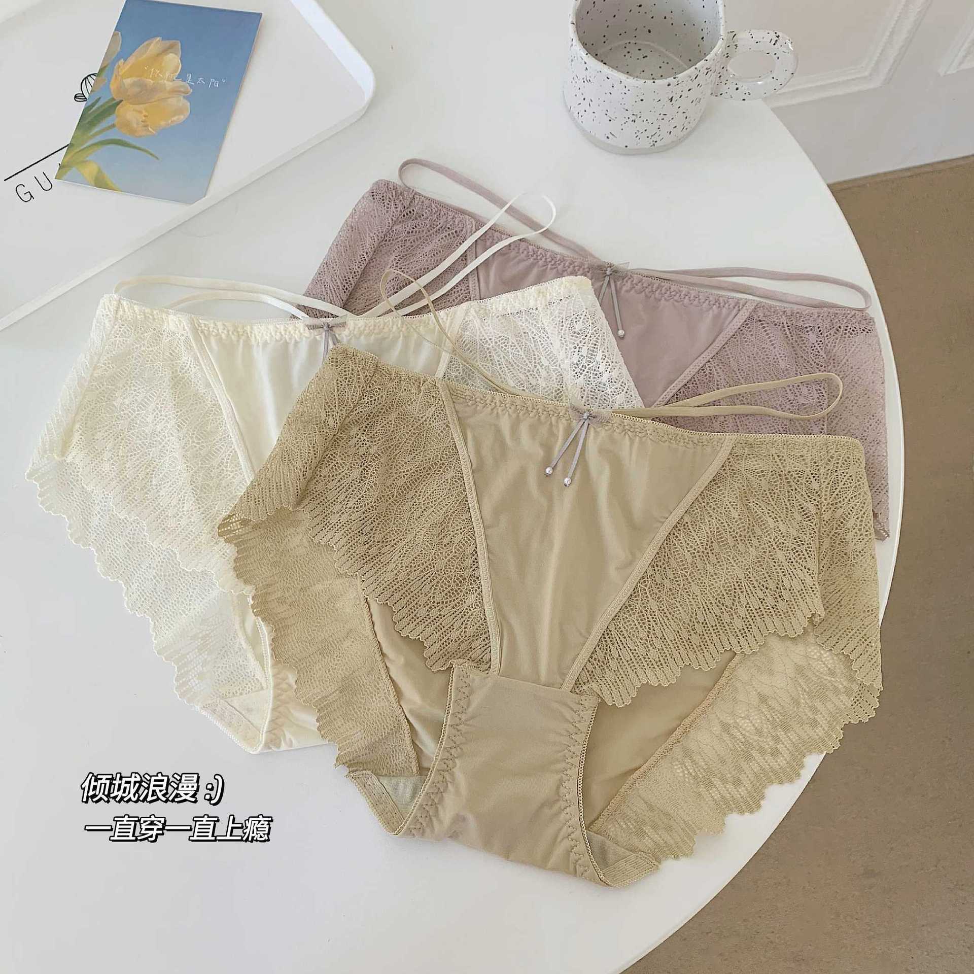 섹시한 크로스 레이스 업 레이스 속옷 순수 하이 스플릿 실키 새틴 꽃 플러스 사이즈 여성 트림 반바지