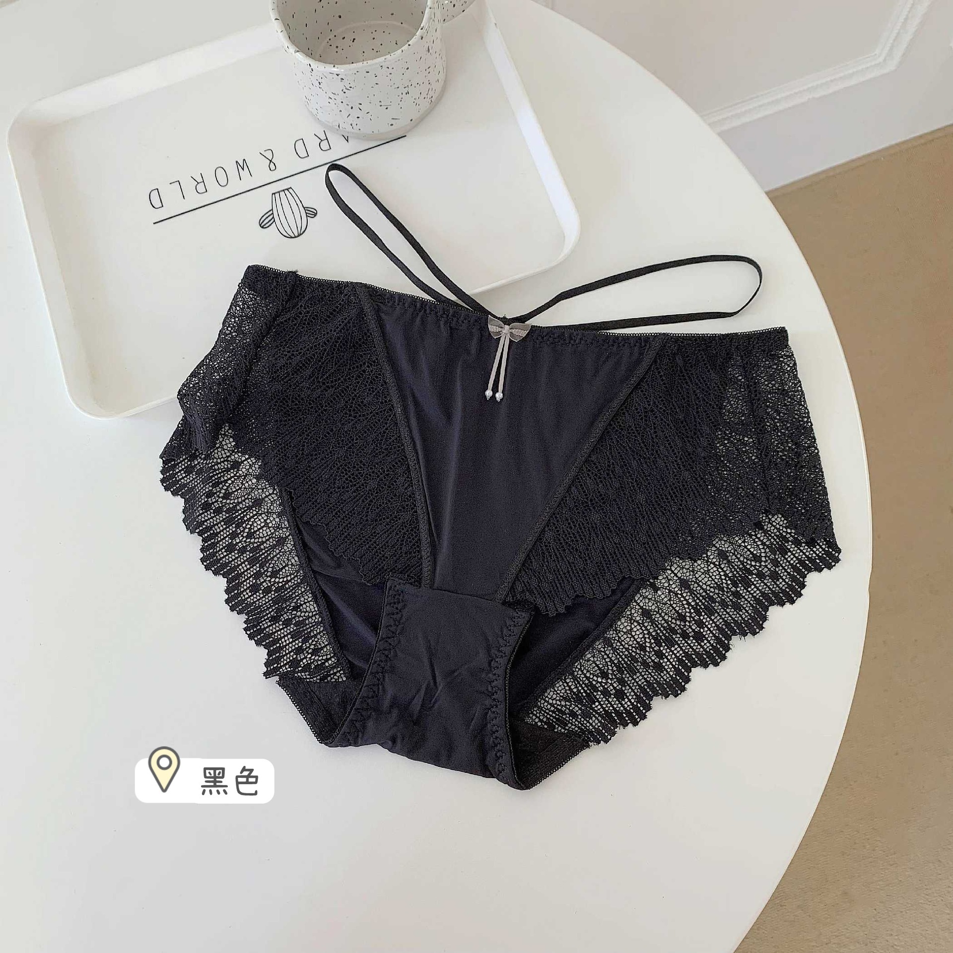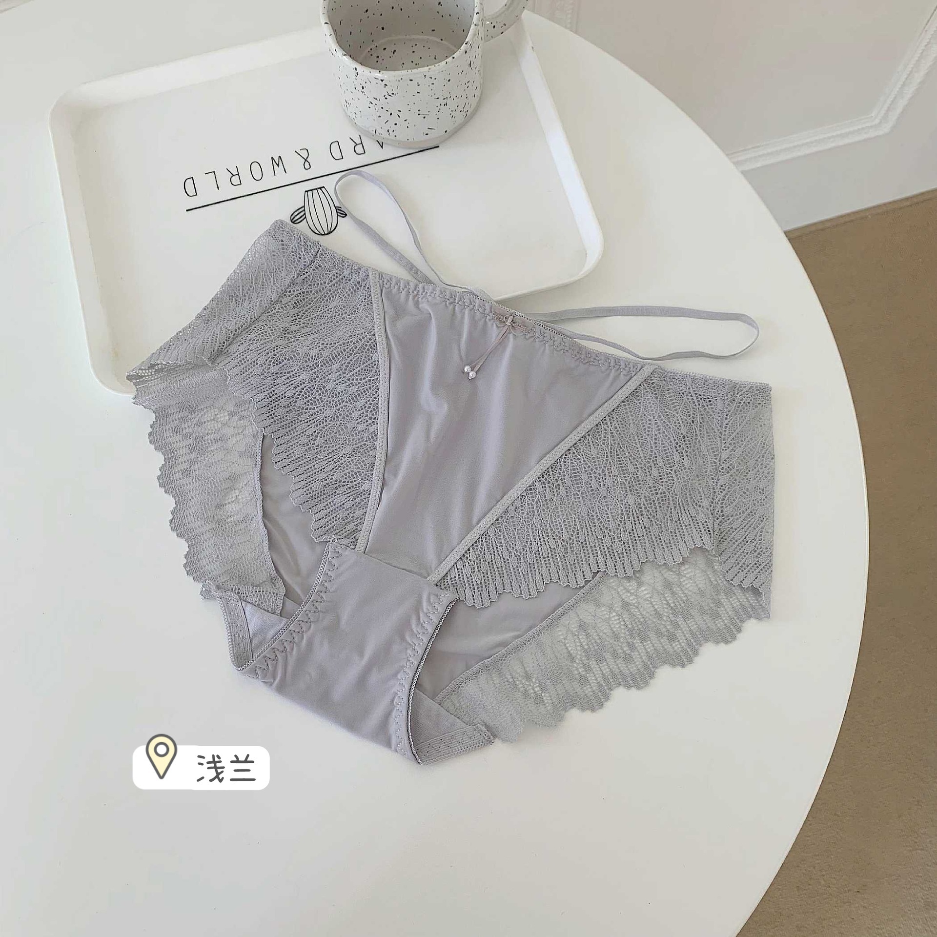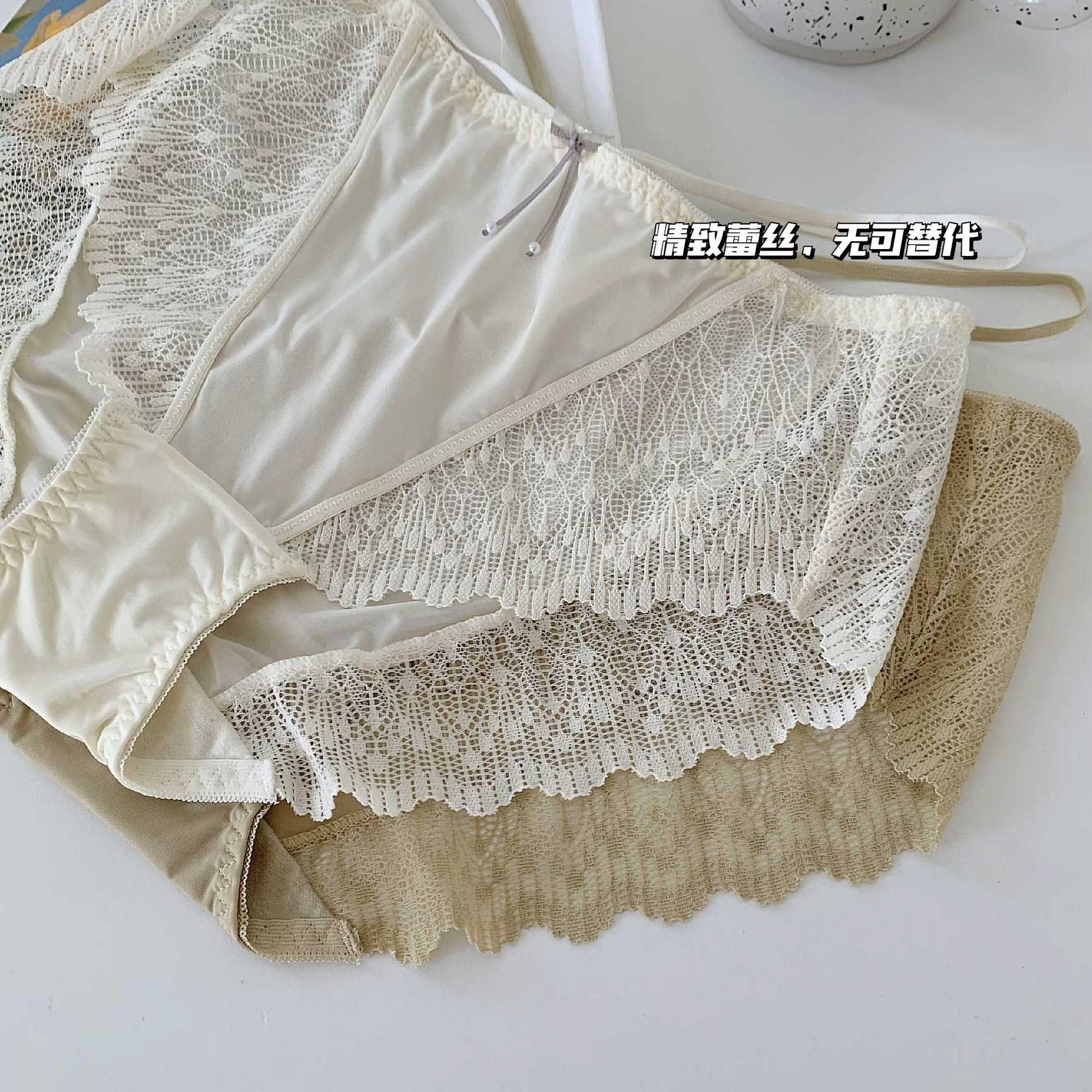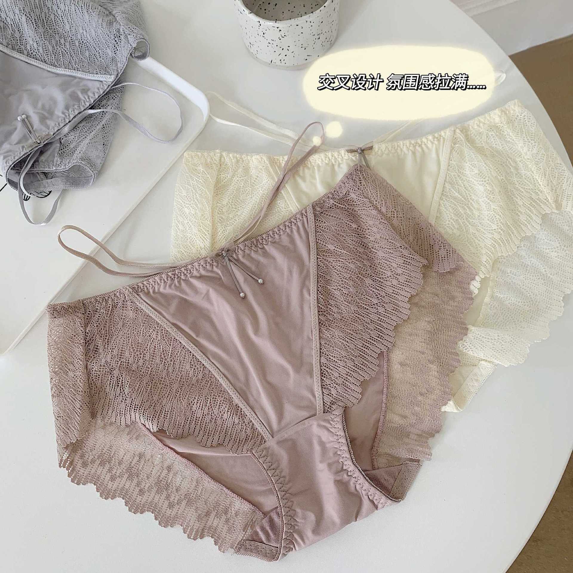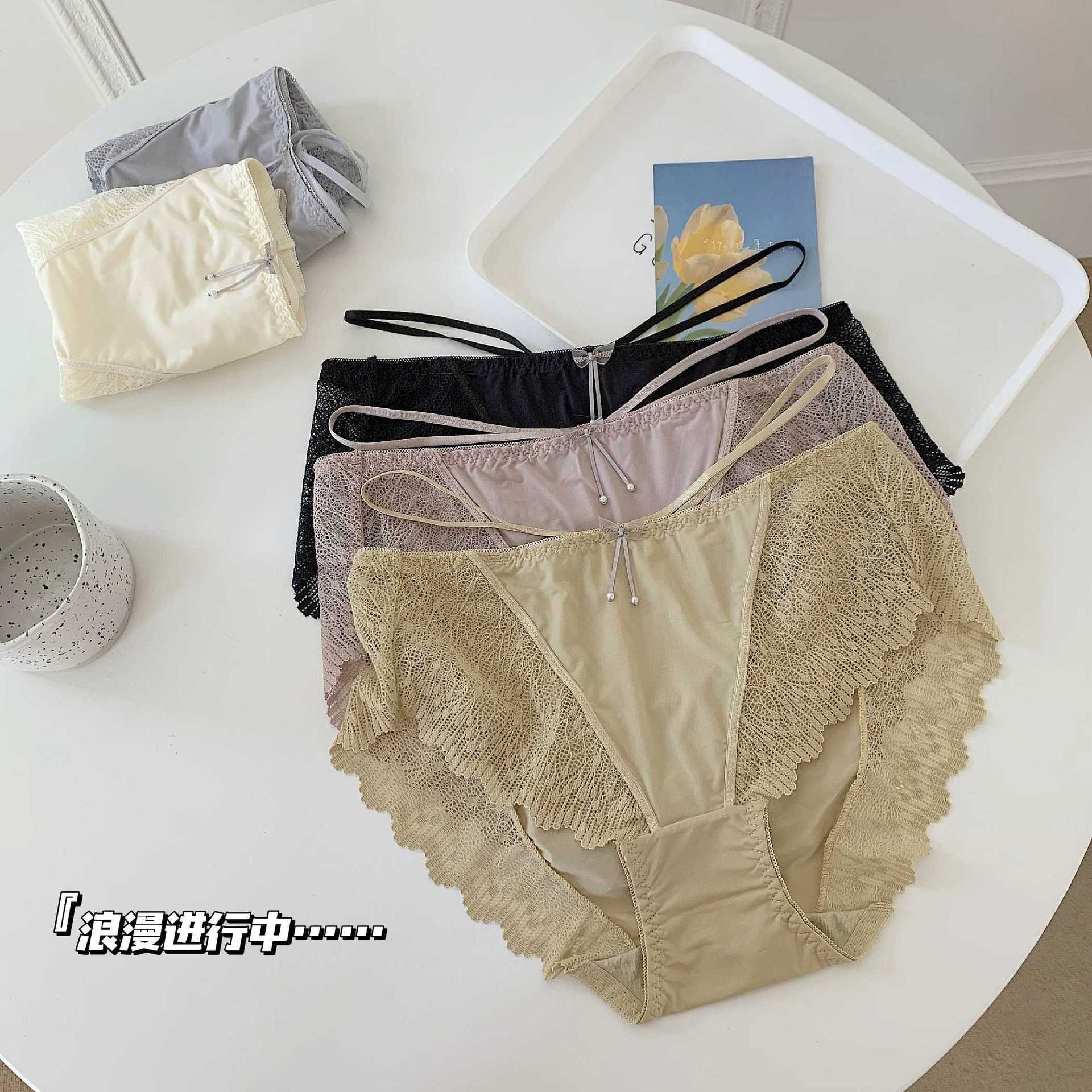 섹시한 크로스 레이스 업 레이스 속옷 순수 하이 스플릿 실키 새틴 꽃 플러스 사이즈 여성 트림 반바지