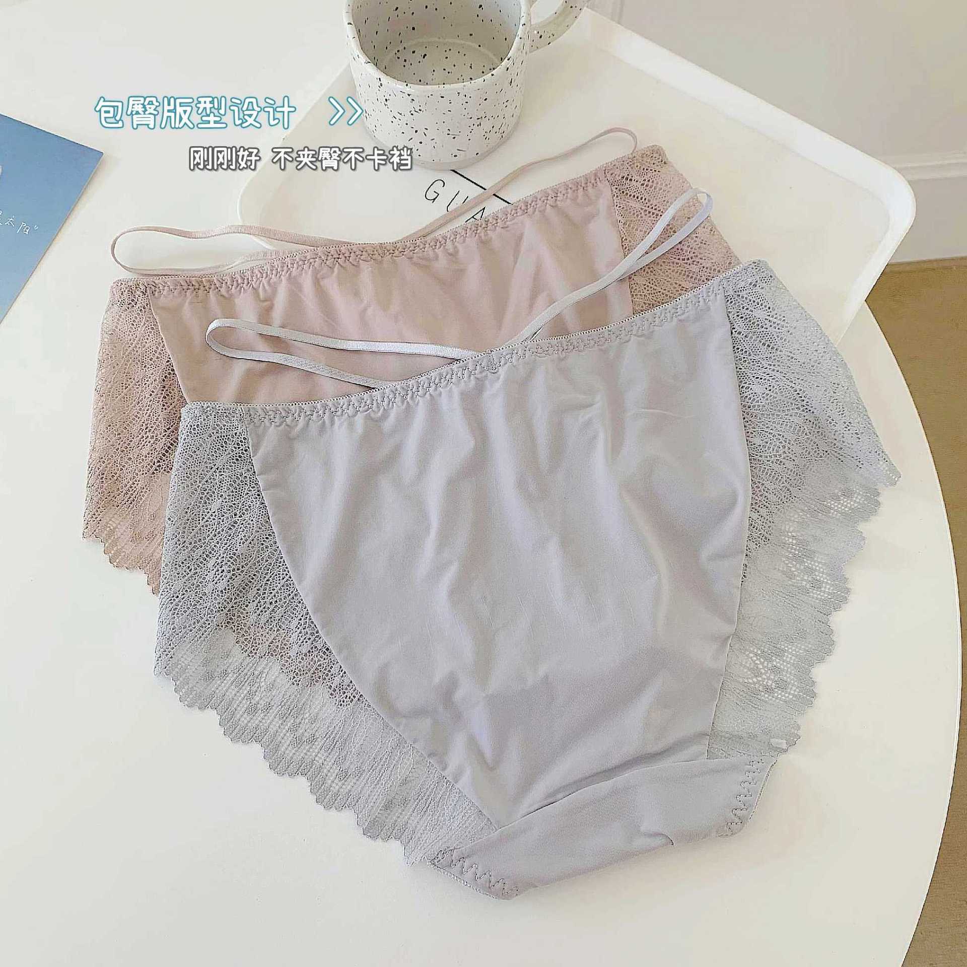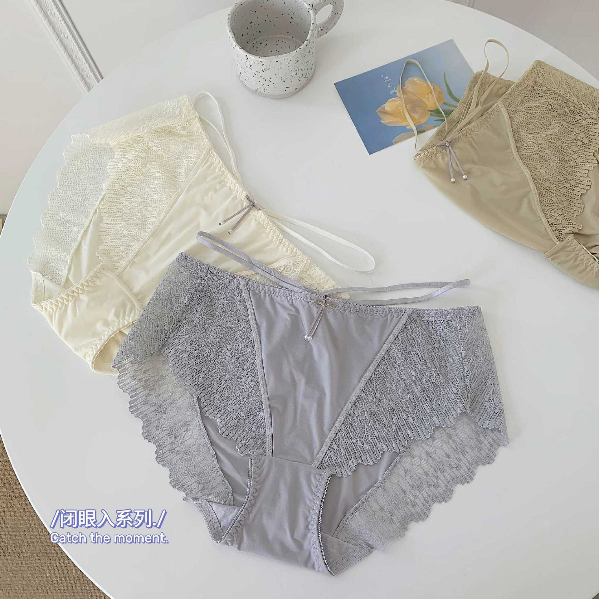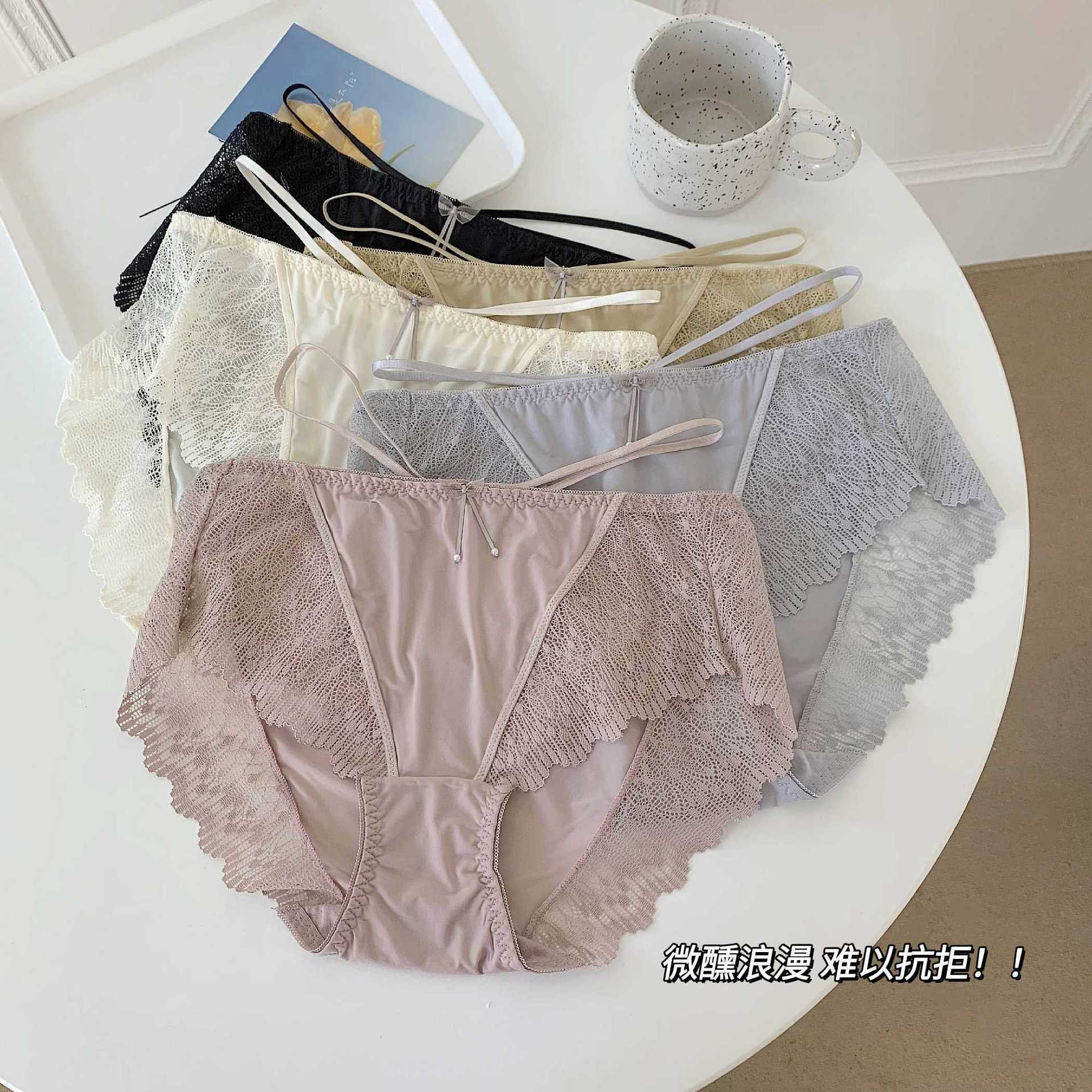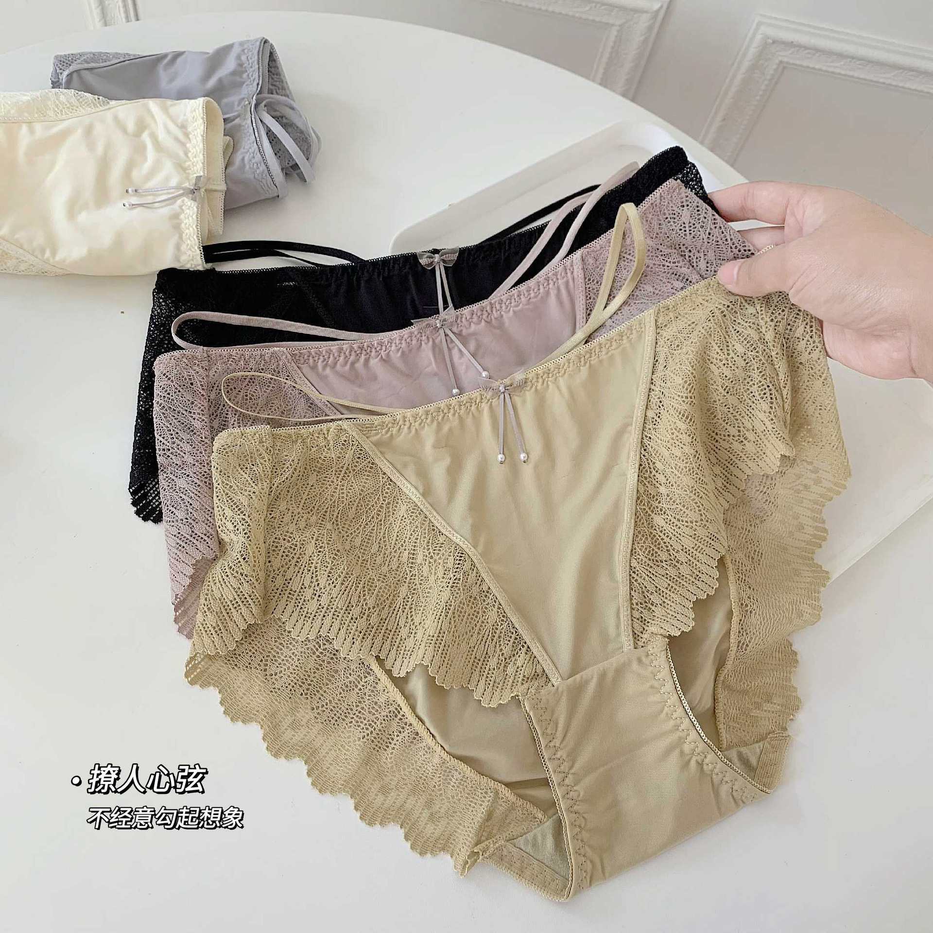섹시한 크로스 레이스 업 레이스 속옷 순수 하이 스플릿 실키 새틴 꽃 플러스 사이즈 여성 트림 반바지