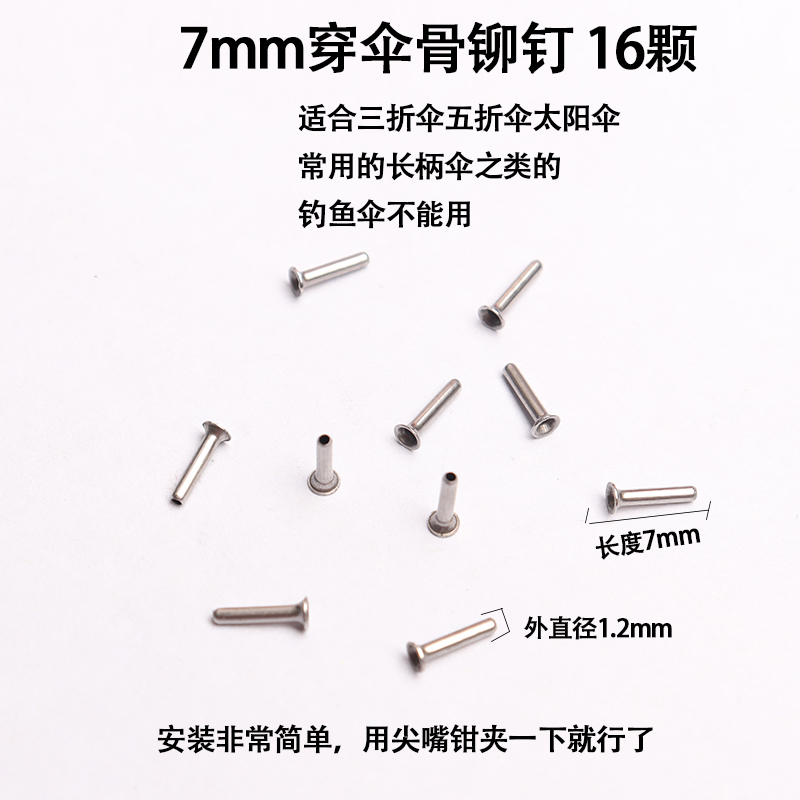 도매 세 접힌 우산 우산 피팅 낚시 우산 리벳 피팅 수리 착용 뼈 모자 네일 우산 뼈 연결 옥수수 핀