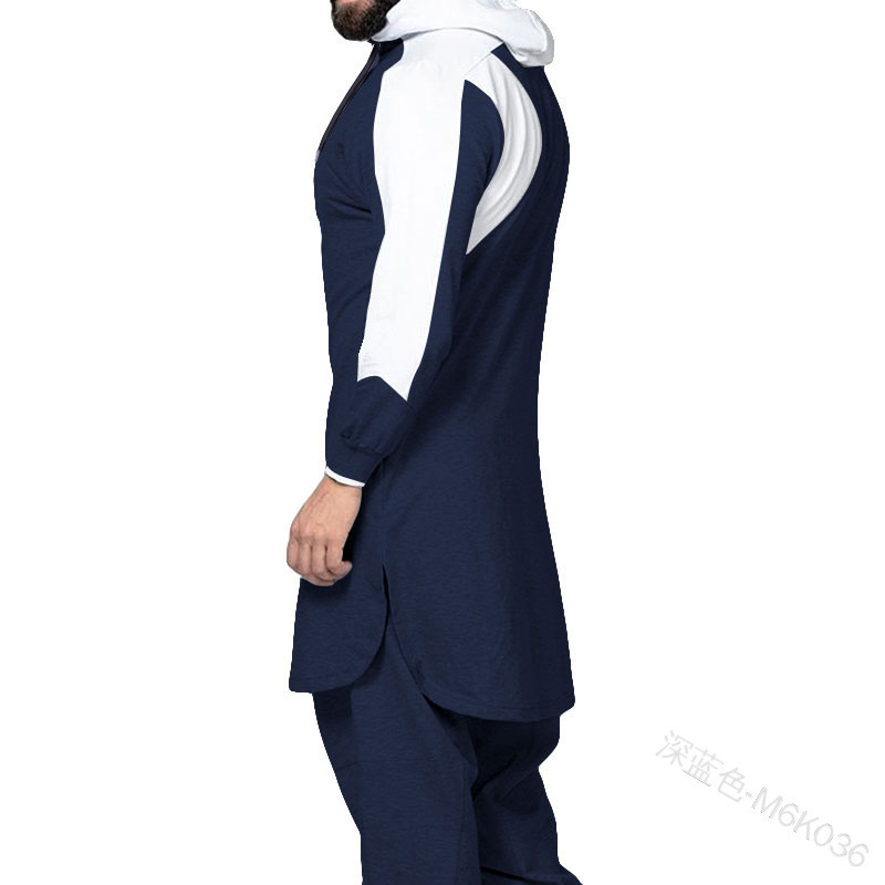 유럽과 미국의 2024 새로운 남성 라운드 넥 컬러 매칭 후드 스플릿 탑 패션 풀오버 롱 슬리브 스포츠 캐주얼 스웨터