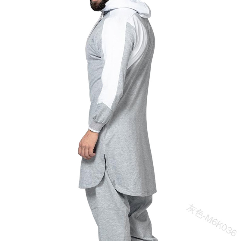 유럽과 미국의 2024 새로운 남성 라운드 넥 컬러 매칭 후드 스플릿 탑 패션 풀오버 롱 슬리브 스포츠 캐주얼 스웨터스토어 가기