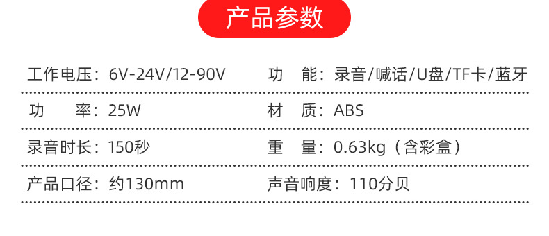 더블 드릴 자동차 확성기 6V12V24V 실속 판매 선전 앰프 녹음 스피커 스피커 스피커