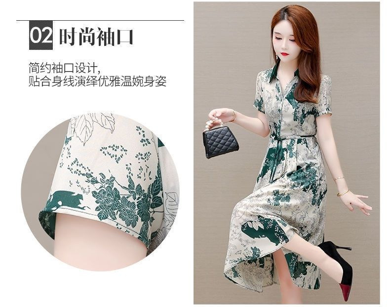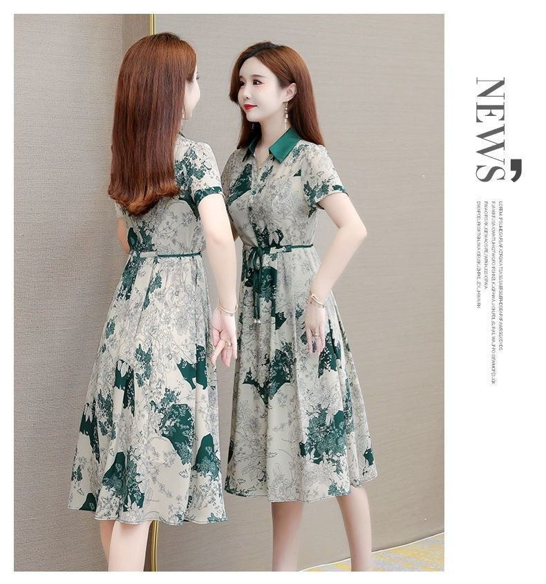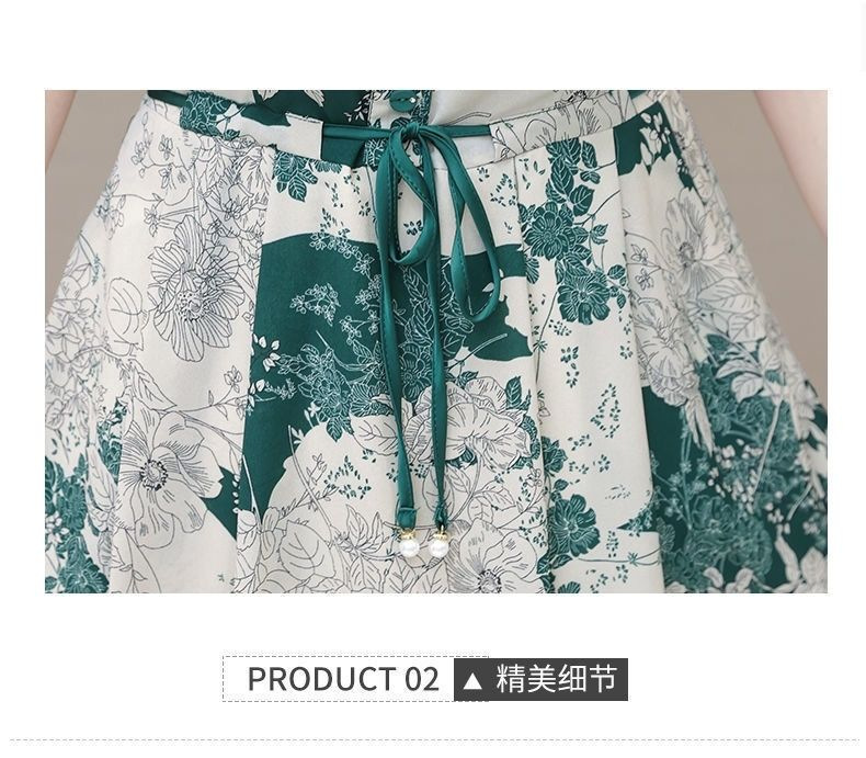 한국 스타일 세련된 인쇄 원피스 여자의 2023 여름 새로운 허리 슬리밍 우아한 여자의 하이 웨이스트 레이스 업 원피스스토어 가기