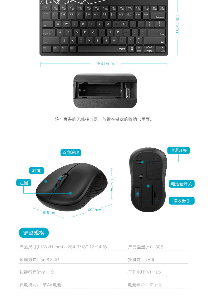 Rapoo 8000S/8000GT 키보드 및 마우스 세트 무선 키보드 및 마우스 세트 사무실 키보드 및 마우스 세트스토어 가기