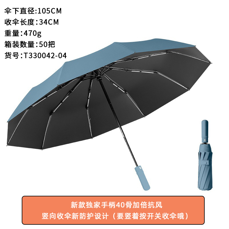 • 미스트 블루 - 신제품 40본 검정색 접착제 강화 방풍 자동 우산