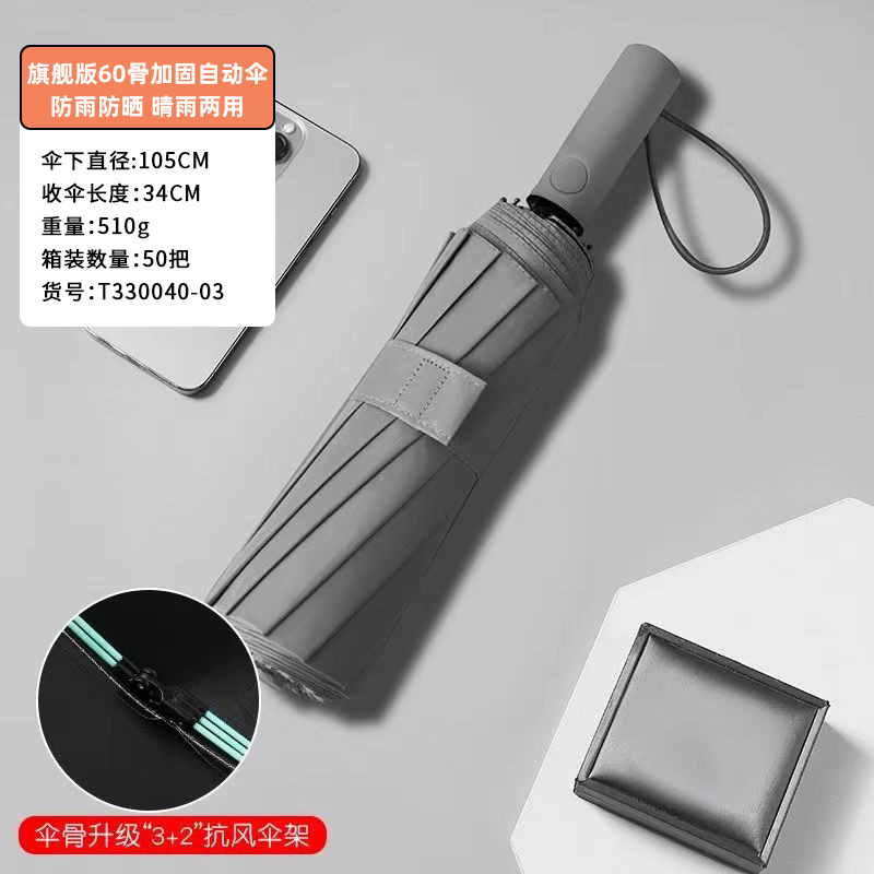 • 회색 - 업그레이드 60본 블랙 코팅 강화 자동 우산