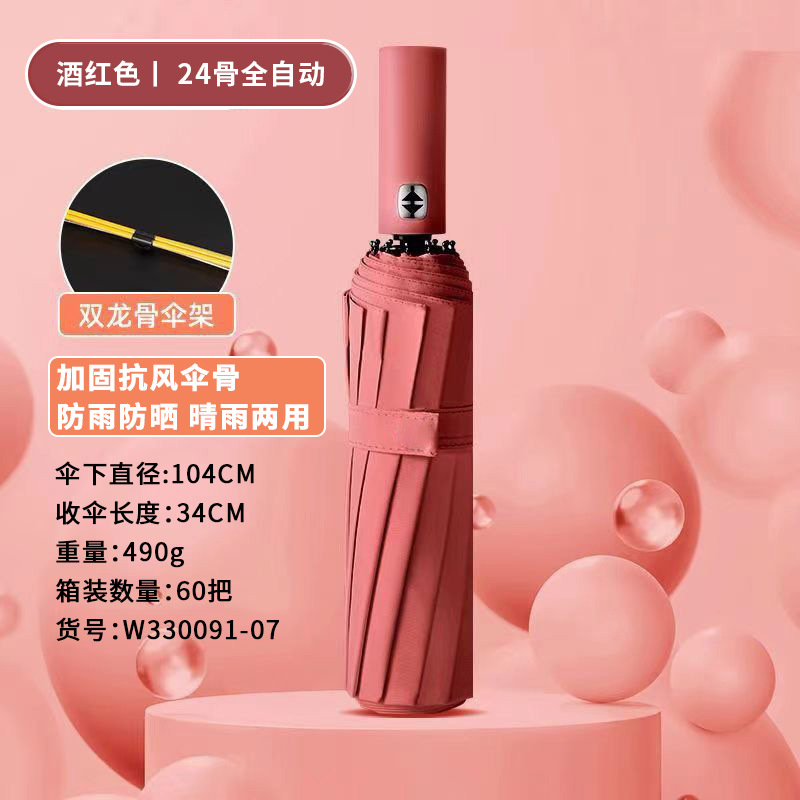 • 와인색 24본 우산 - 블랙 코팅 강화 자동 우산