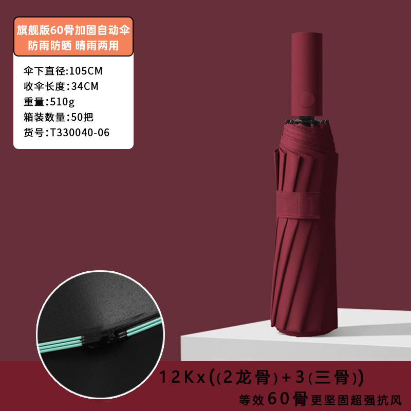 • 와인색 - 업그레이드 60본 블랙 코팅 강화 자동 우산
