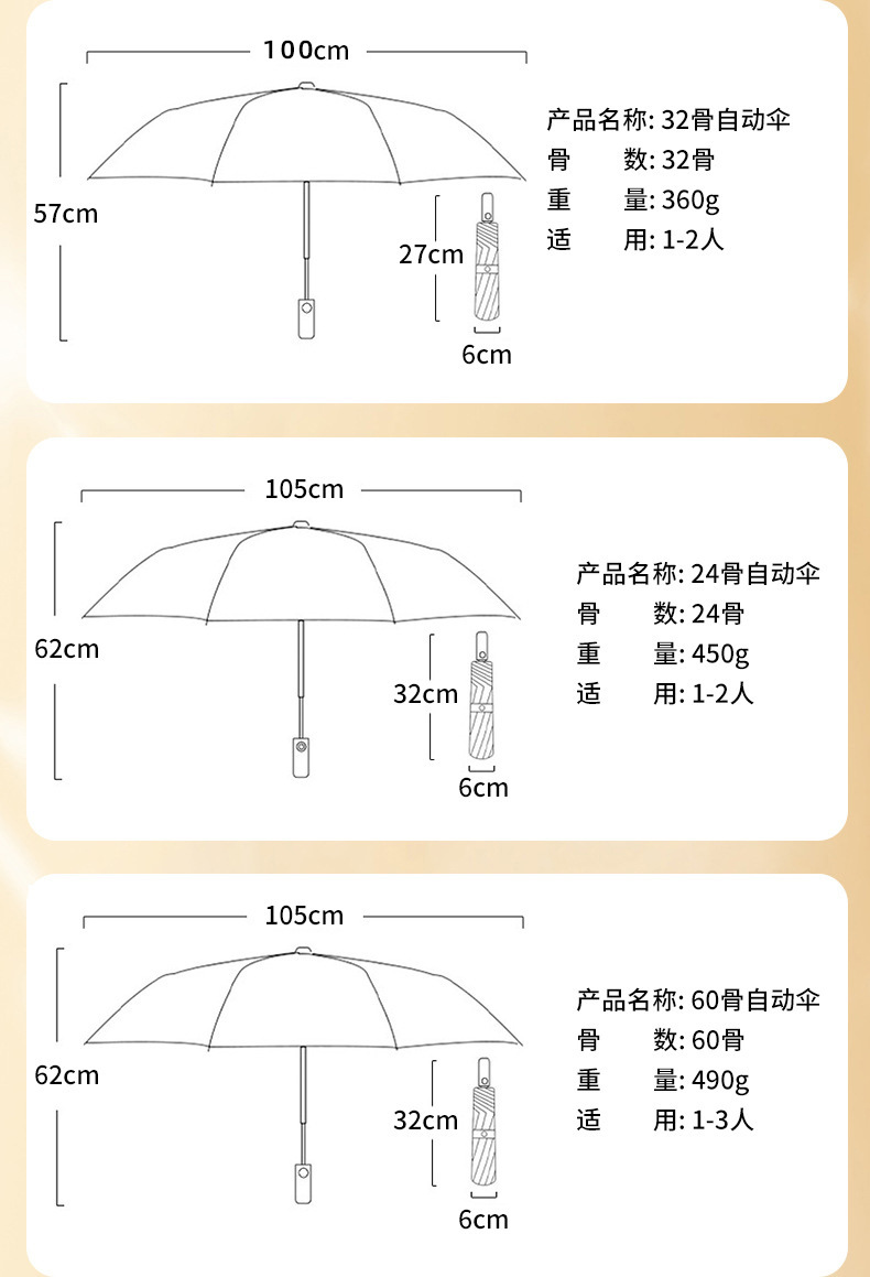• 【자동 플래그십 모델】 베이지 - 유리섬유 192개 뼈대 강화 + 방수/자외선 차단