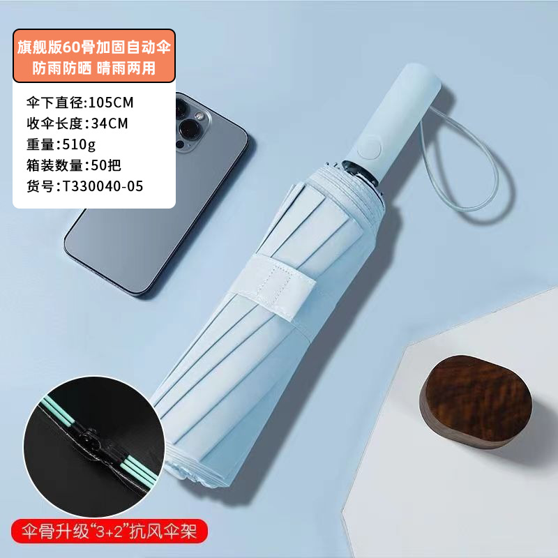 • 하늘색 업그레이드 60본 블랙 코팅 강화 자동 우산