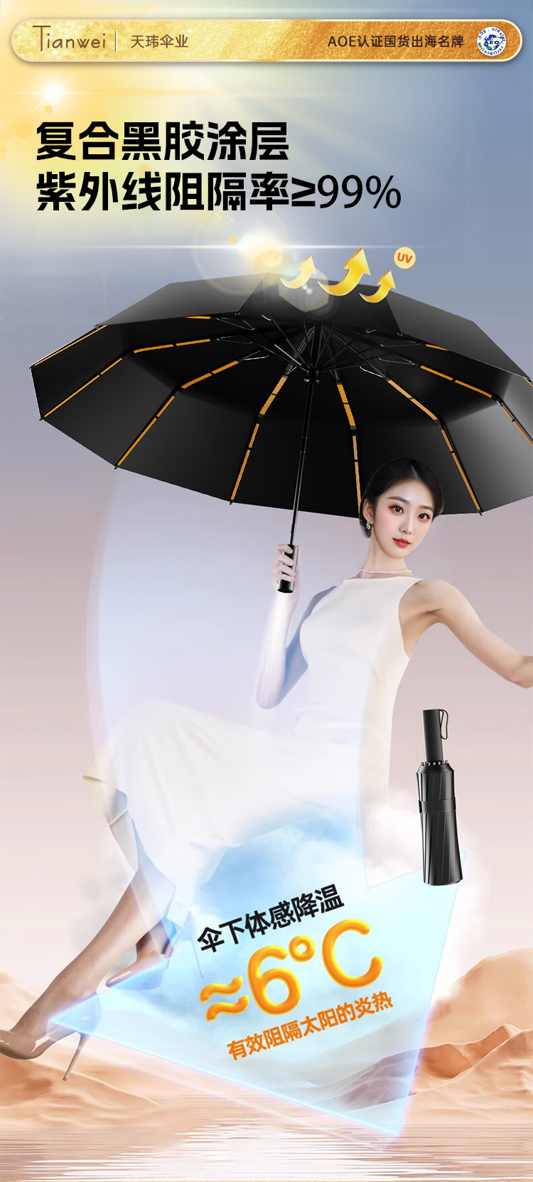 • 부르고뉴-16 리브 자동 강화 비닐 써니 우산