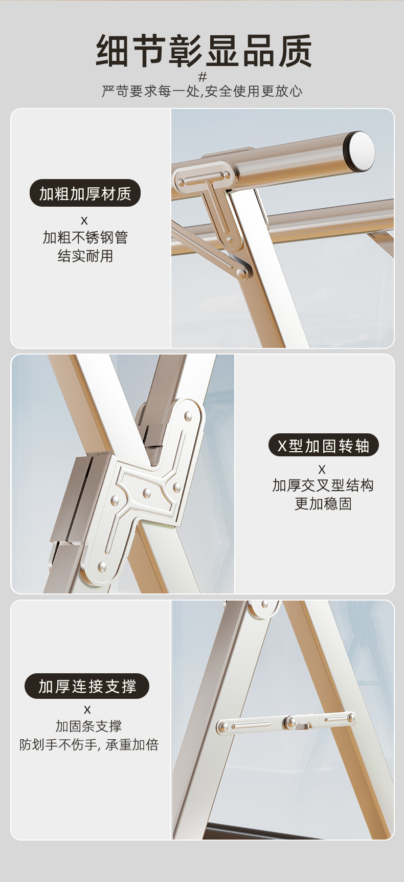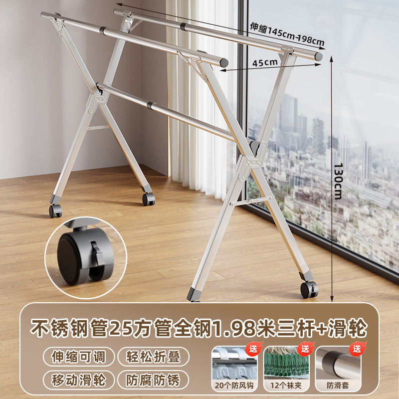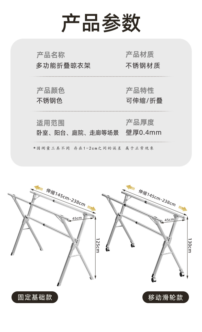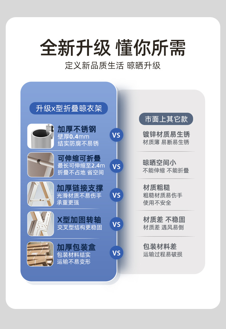 小贵但结实:产品主体管材采用优质不锈钢制作而成,相较于市场同款低价镀锌产品而言,用料更扎实,质量更好,更加结实耐用、承重力更强,不会发生衣服稍微挂多一点管子就弯折变形的情形。此外,产品包装盒经过加厚加固升级,同时,物流方面采用顺丰发货,相较于普通快递更加安心,以减少快递运输过程造成的破损变形,所以价格和运费方面会显得相对高一些。