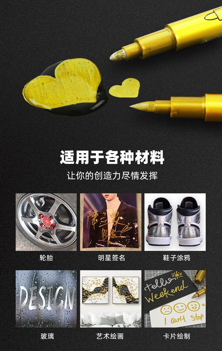 Guangna 550 골드 실버 브러시 소프트 모피 페인트 펜 앨범 DIY 블랙 판지 화재 페인트 씰 사인 인 마커 펜스토어 가기