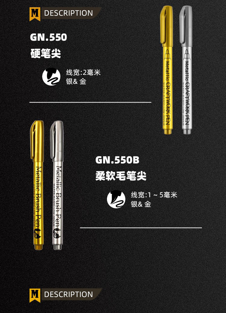 Guangna 550 골드 실버 브러시 소프트 모피 페인트 펜 앨범 DIY 블랙 판지 화재 페인트 씰 사인 인 마커 펜