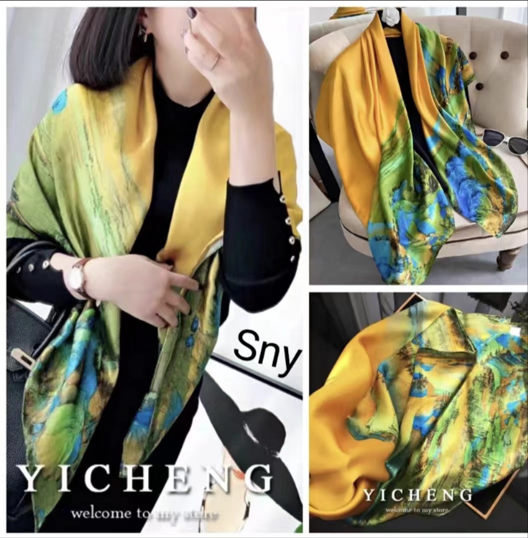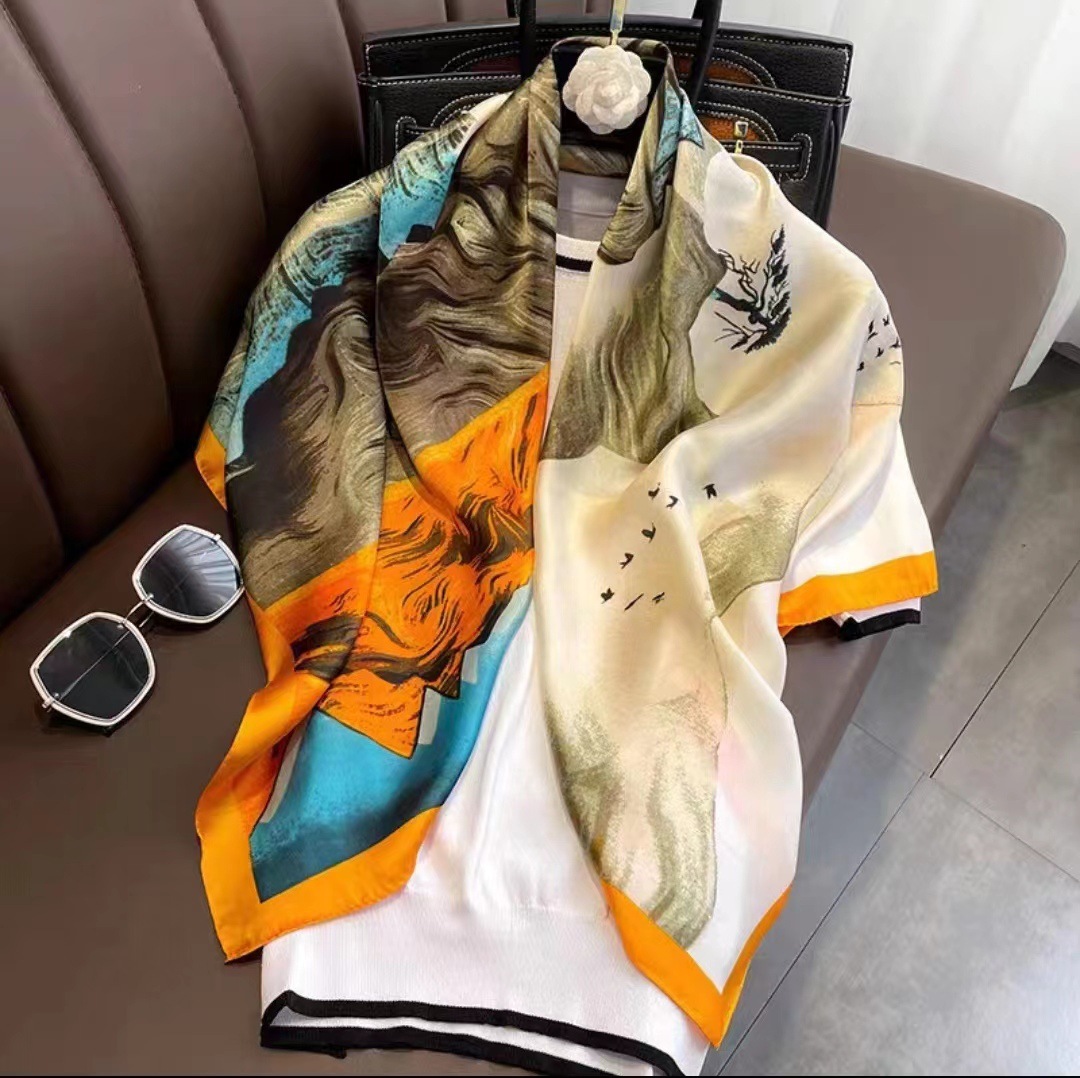 새로운 중국 스타일 여성 선물 중국 스타일 천 마일 장산 그림 큰 광장 스카프 실크 스카프 목도리 어머니의 날 스카프