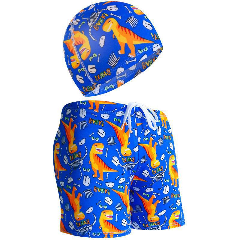 새로운 여름 소년 수영 트렁크 어린이 수영 트렁크 수영 모자 세트 제조 업체 귀여운 만화 복서 반바지 해변 바지