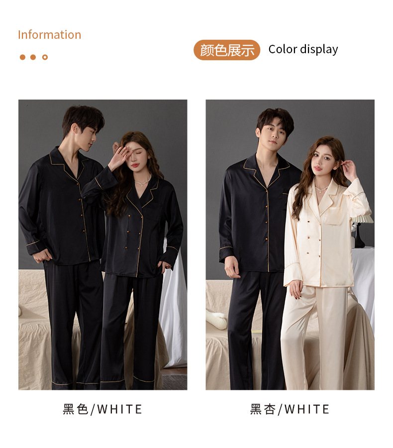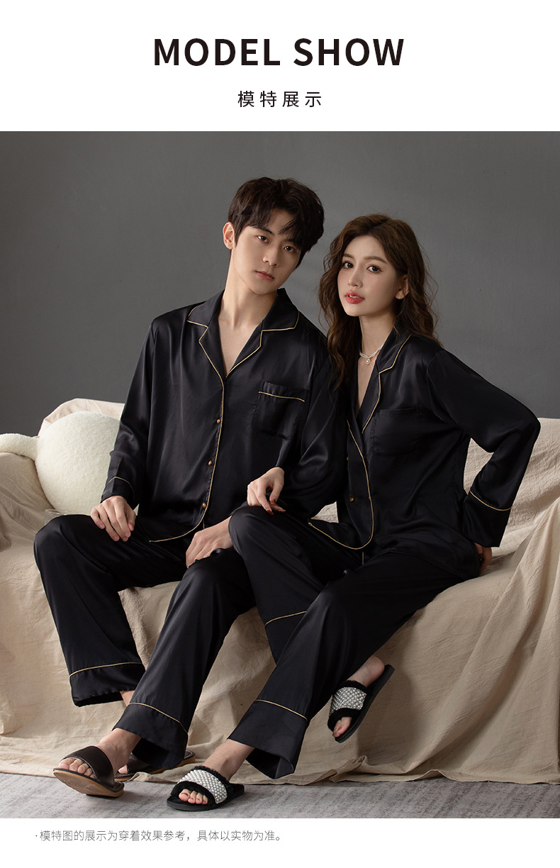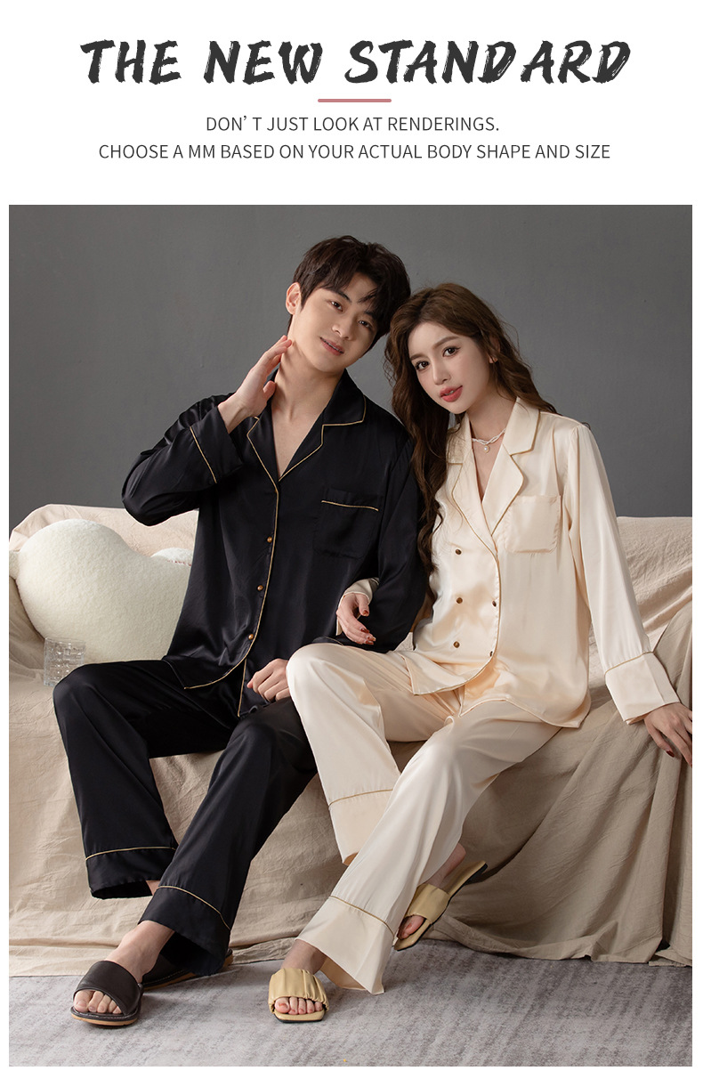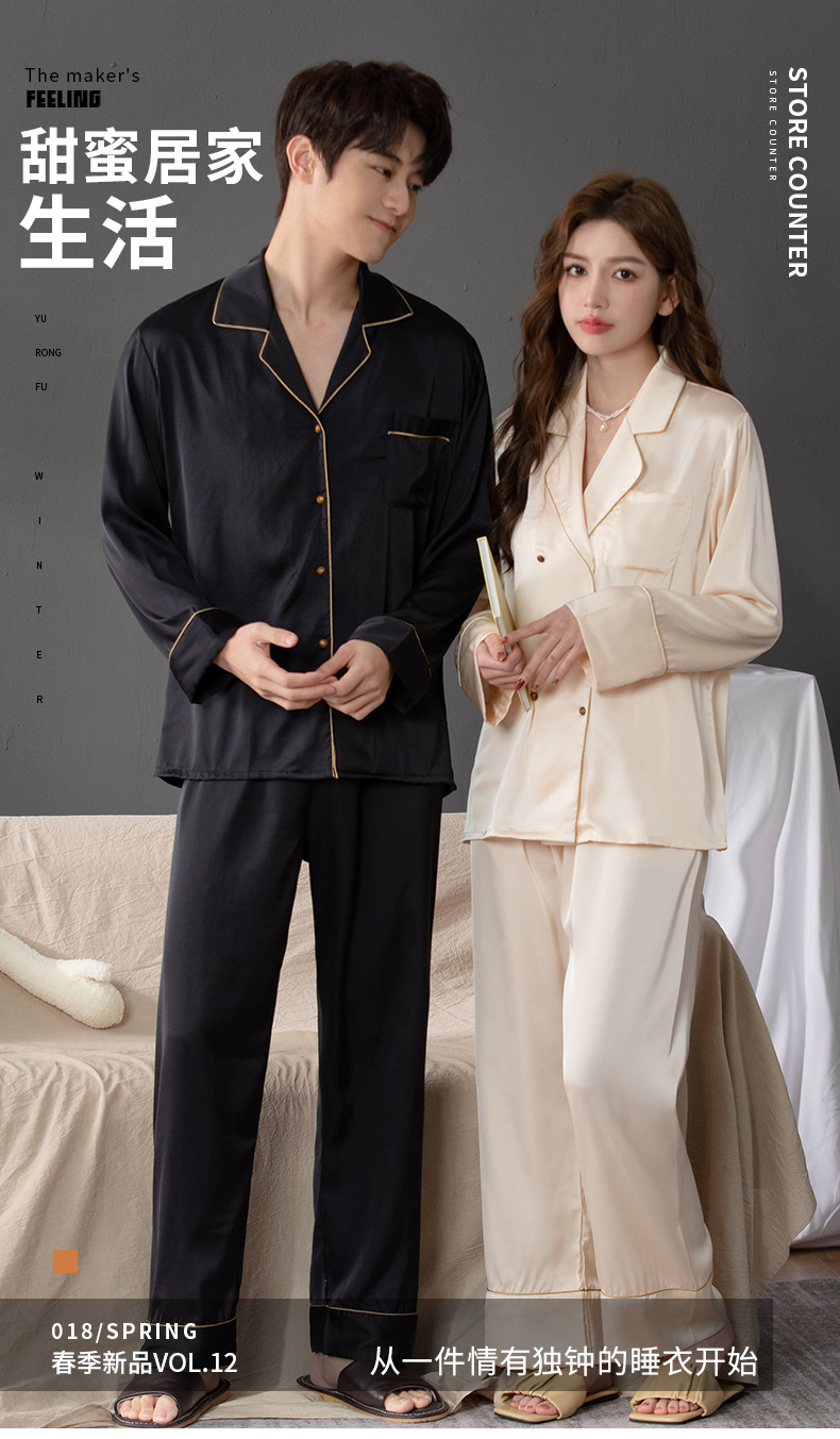 아이스 실크 잠옷 여자의 봄과 가을 고급 착용 옷깃 긴 소매 바지 봄과 가을 커플 홈 세트 투피스 세트스토어 가기