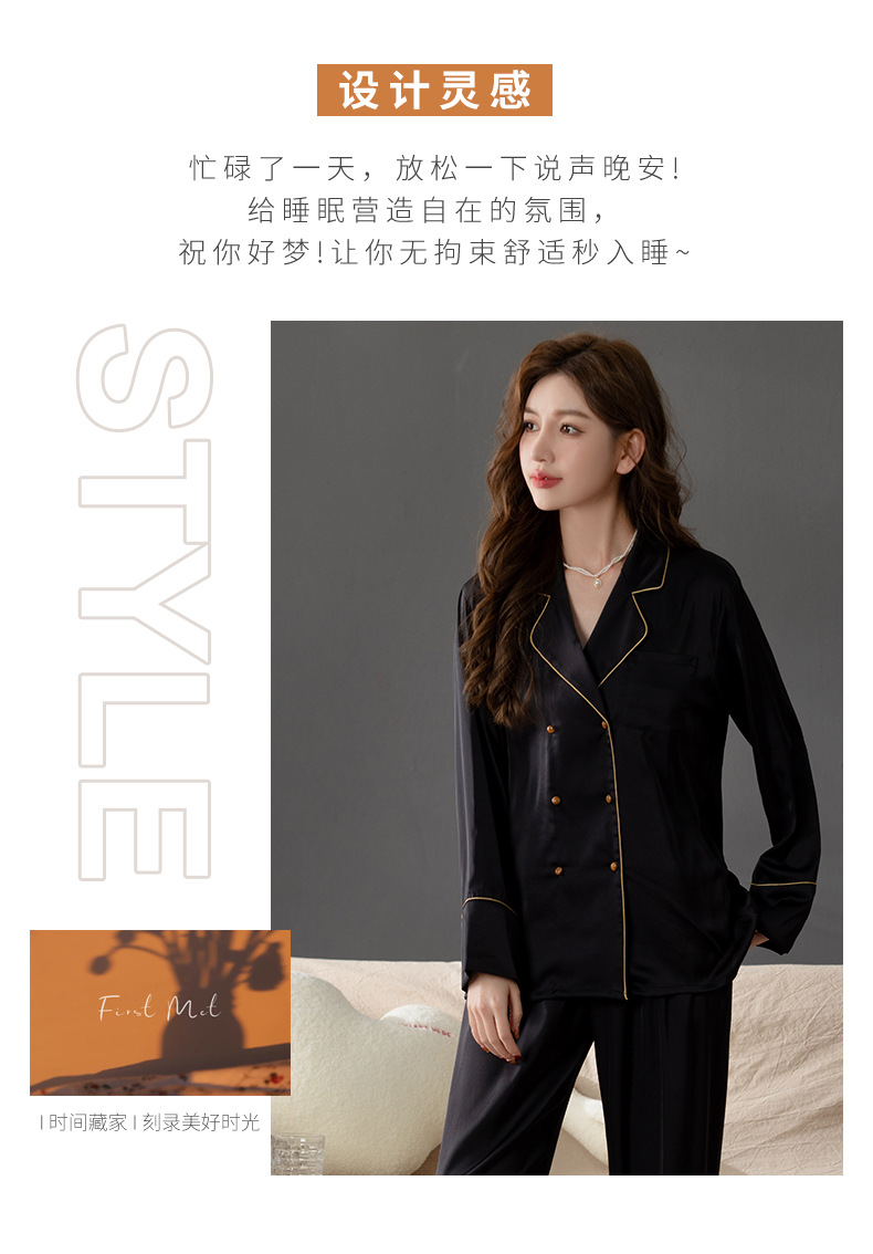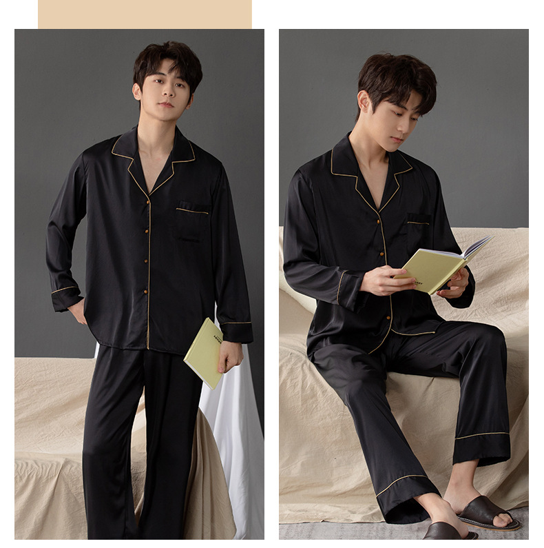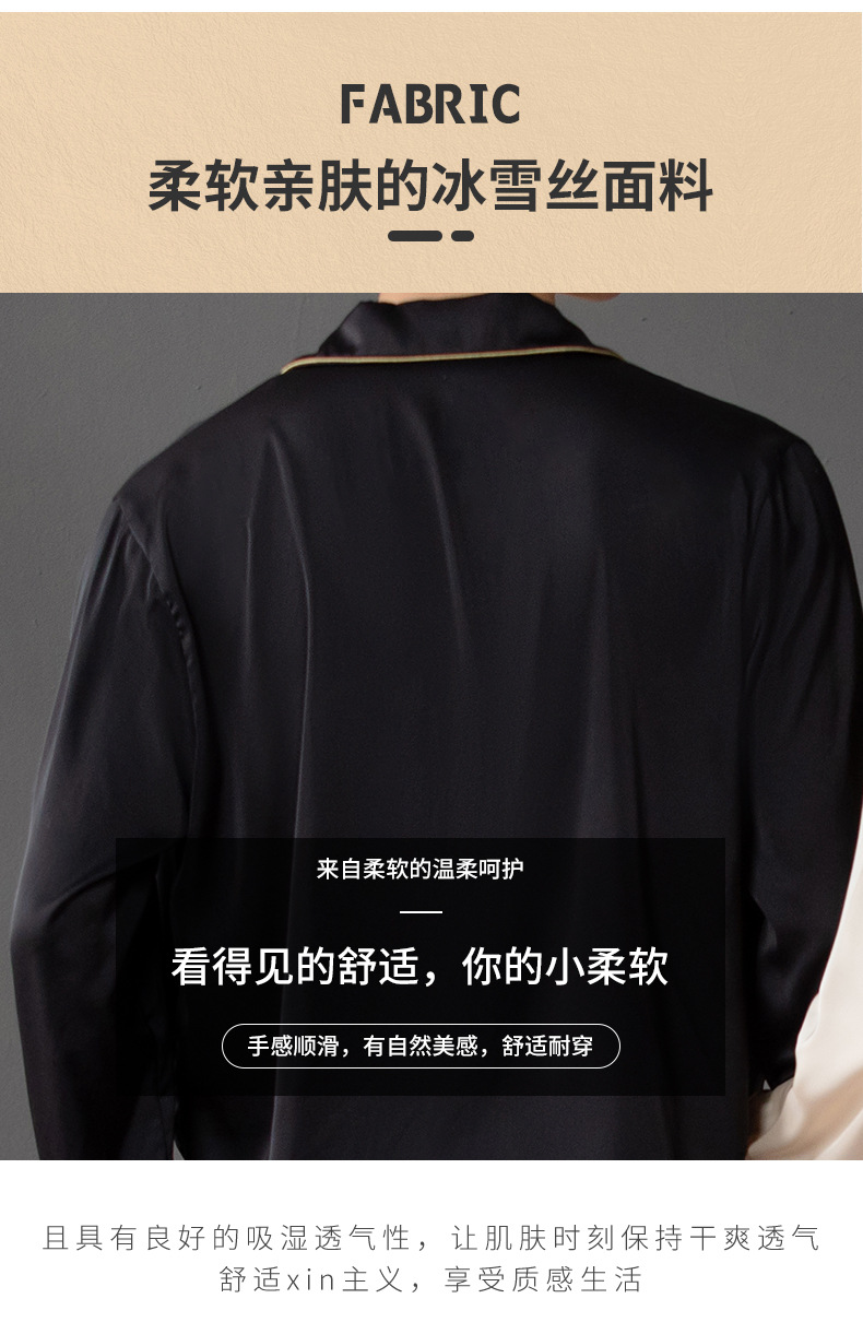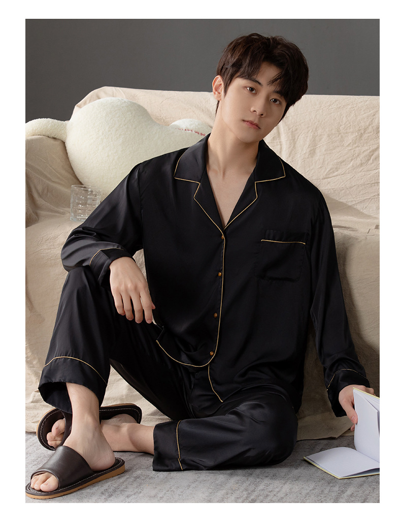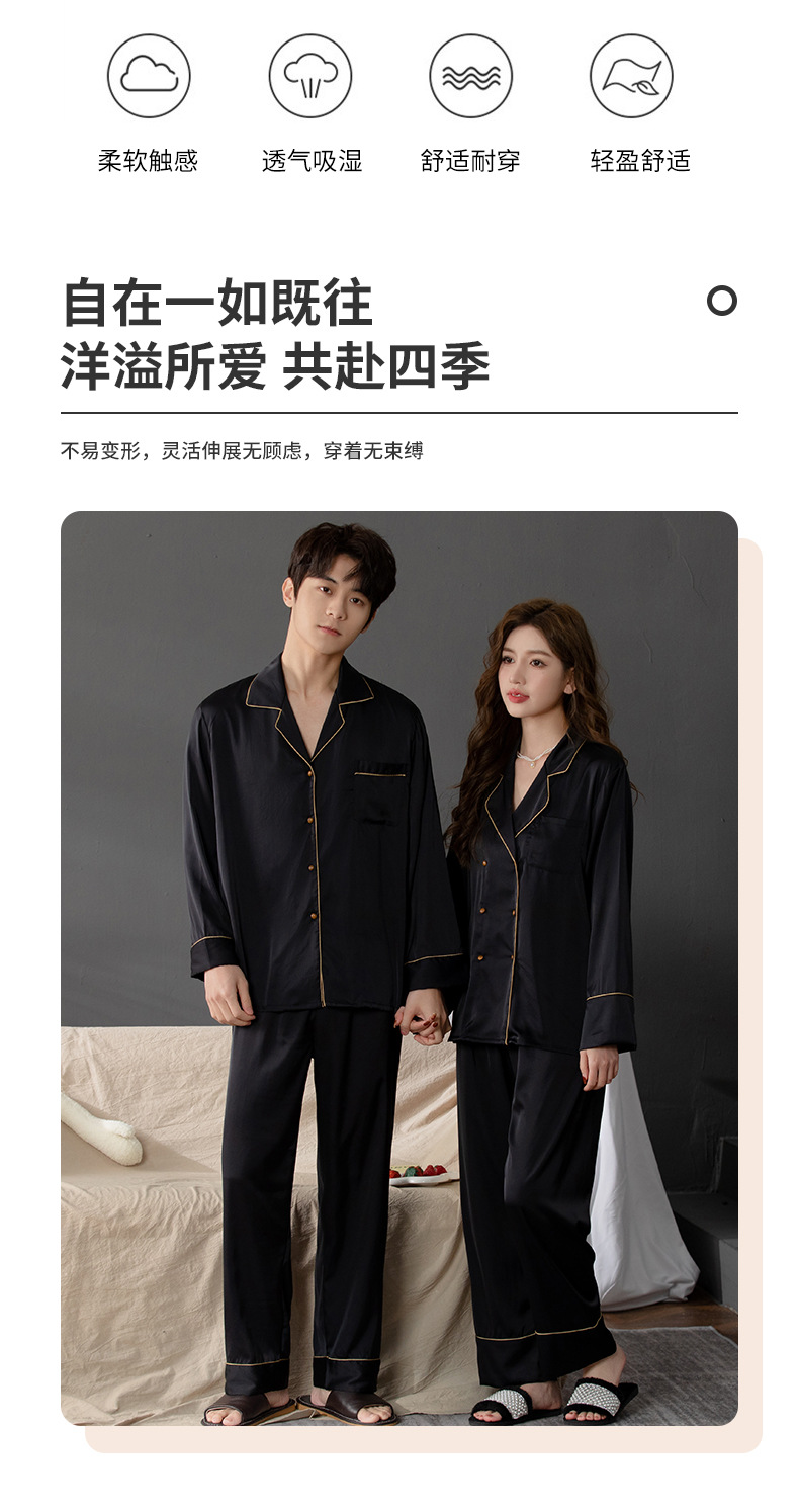 아이스 실크 잠옷 여자의 봄과 가을 고급 착용 옷깃 긴 소매 바지 봄과 가을 커플 홈 세트 투피스 세트스토어 가기
