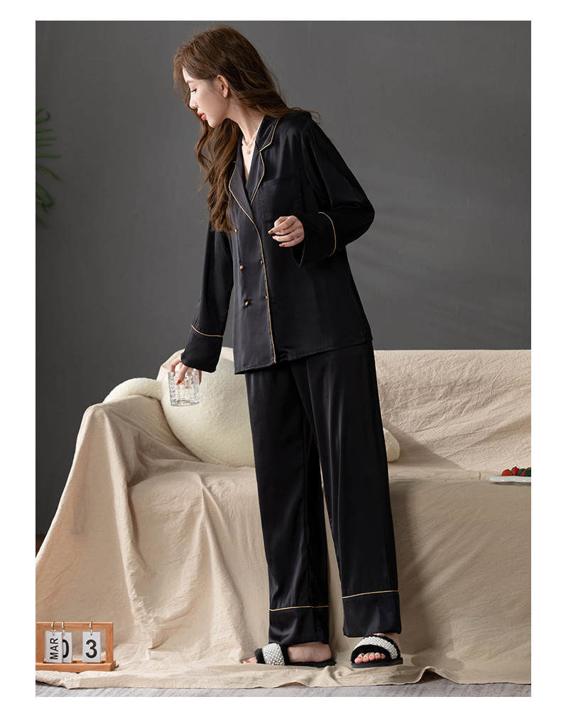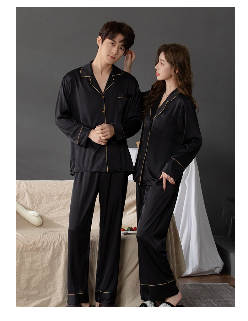 아이스 실크 잠옷 여자의 봄과 가을 고급 착용 옷깃 긴 소매 바지 봄과 가을 커플 홈 세트 투피스 세트