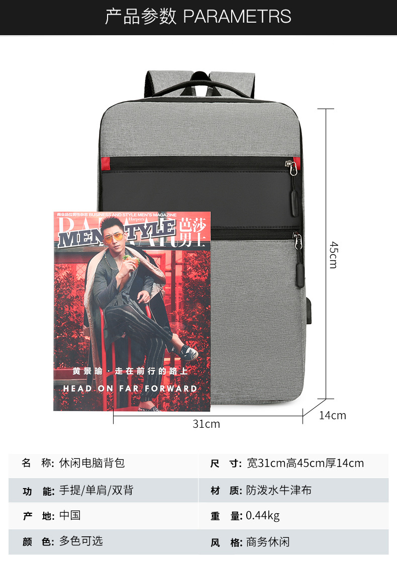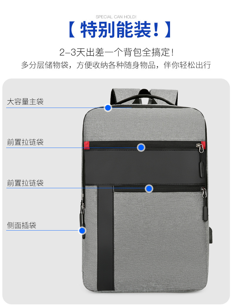 새로운 국경 간 배낭 대용량 USB 인터페이스 배낭 컴퓨터 가방 출장 비즈니스 배낭스토어 가기