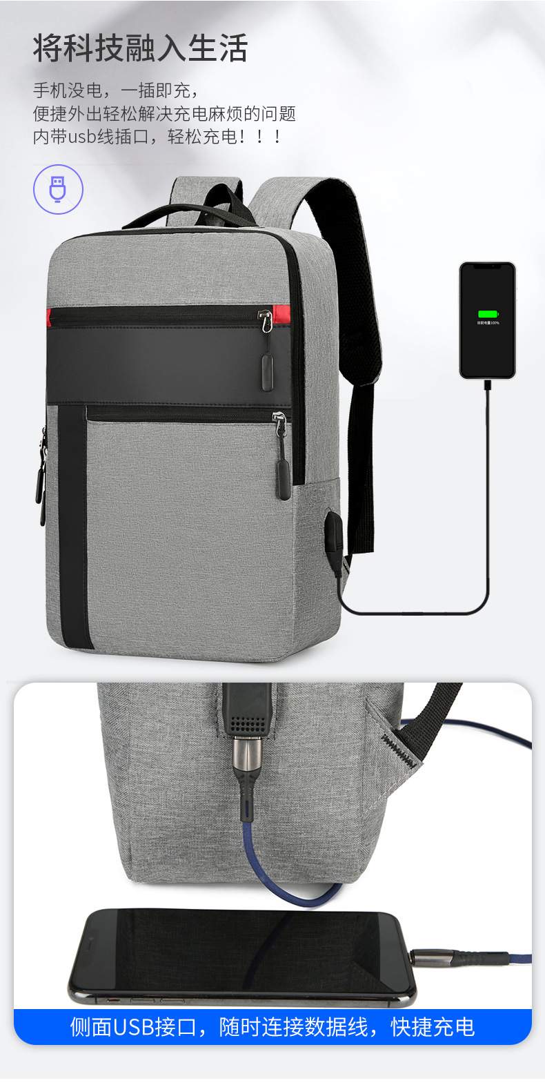 새로운 국경 간 배낭 대용량 USB 인터페이스 배낭 컴퓨터 가방 출장 비즈니스 배낭