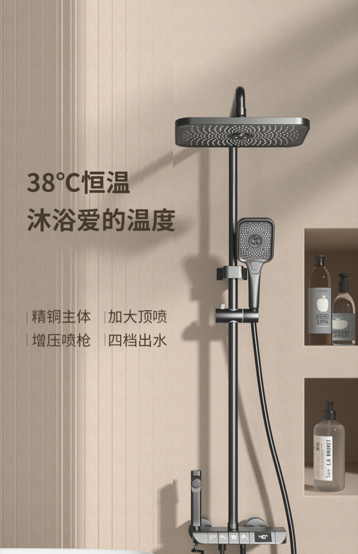 Baer Gun 회색 샤워 샤워 샤워 세트 모든 구리 샤워 샤워 샤워 샤워 욕실 가정용 온도 조절 가압 스프레이 헤드스토어 가기