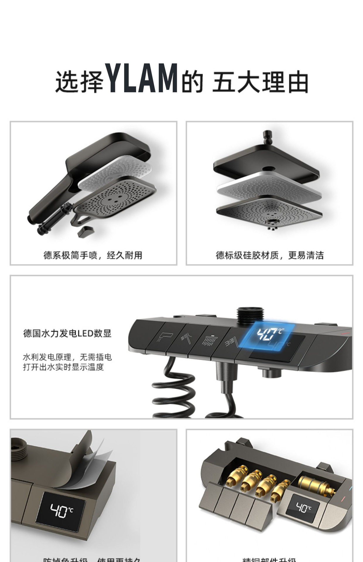 Baer Gun 회색 샤워 샤워 샤워 세트 모든 구리 샤워 샤워 샤워 샤워 욕실 가정용 온도 조절 가압 스프레이 헤드
