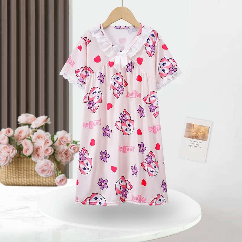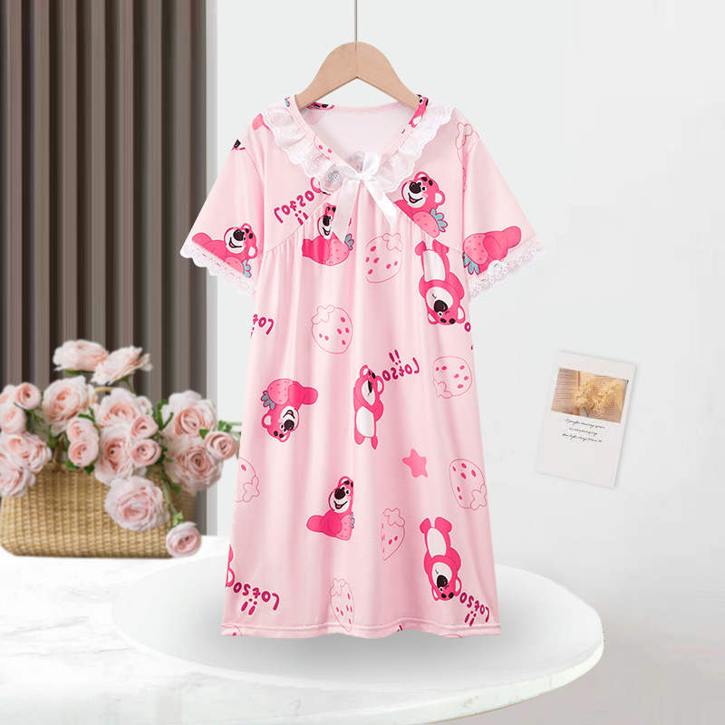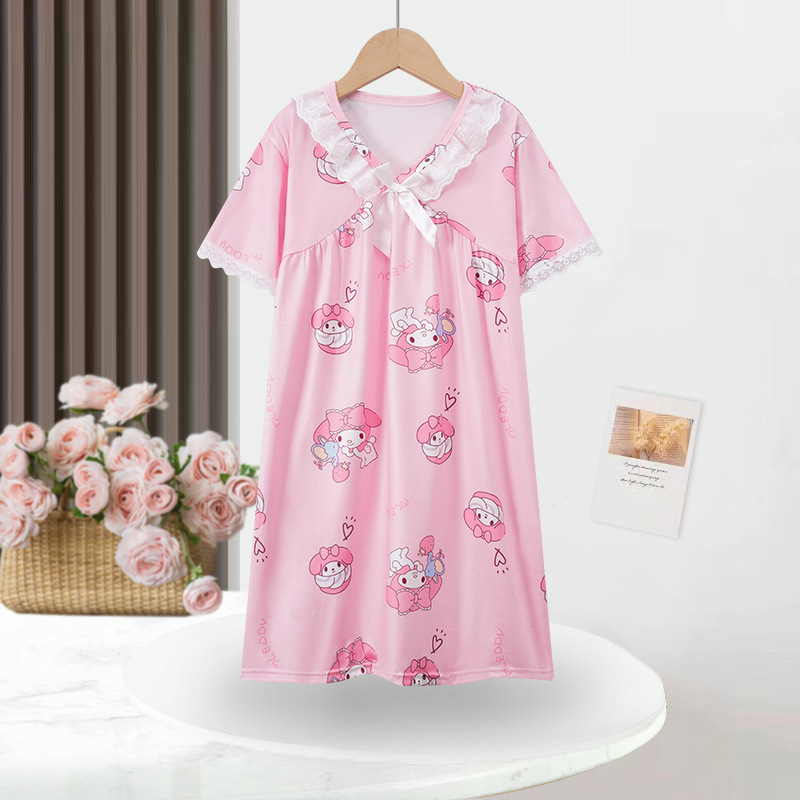 2024 여름 어린이 잠옷 소녀 반팔 잠옷 어린이 만화 중대형 소녀 에어컨 가정 의류 겉옷
