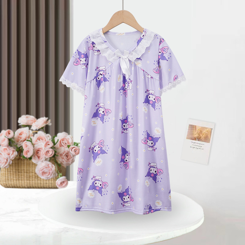 2024 여름 어린이 잠옷 소녀 반팔 잠옷 어린이 만화 중대형 소녀 에어컨 가정 의류 겉옷스토어 가기