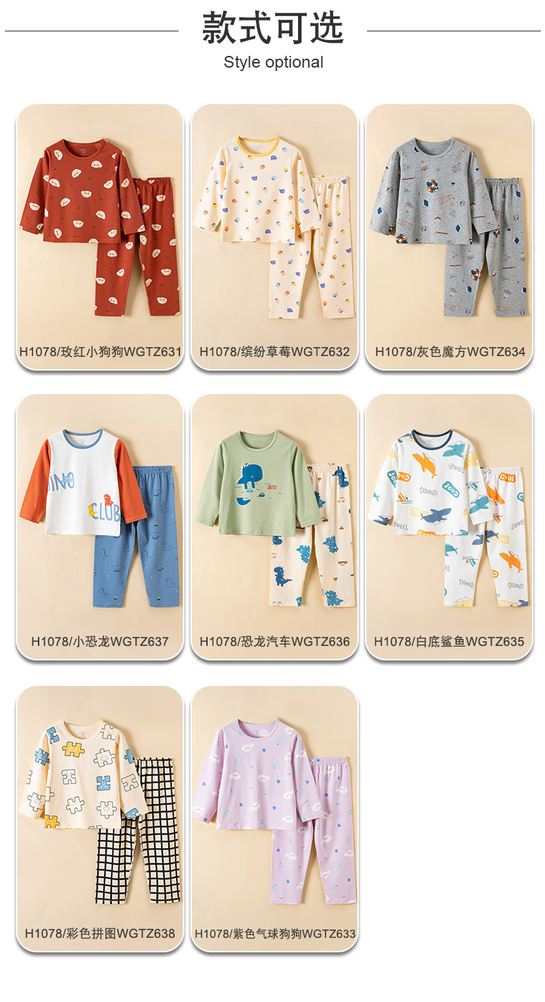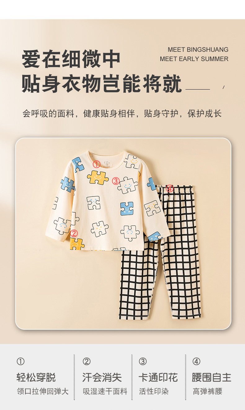 어린이 잠옷 소녀 여름 면 얇은 뼈없는 긴 소매 아기 소년 어린이 가정 옷 세트 도매스토어 가기