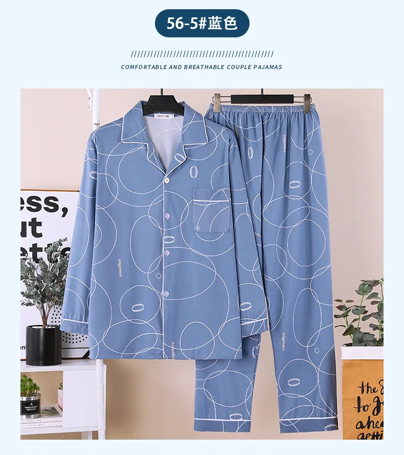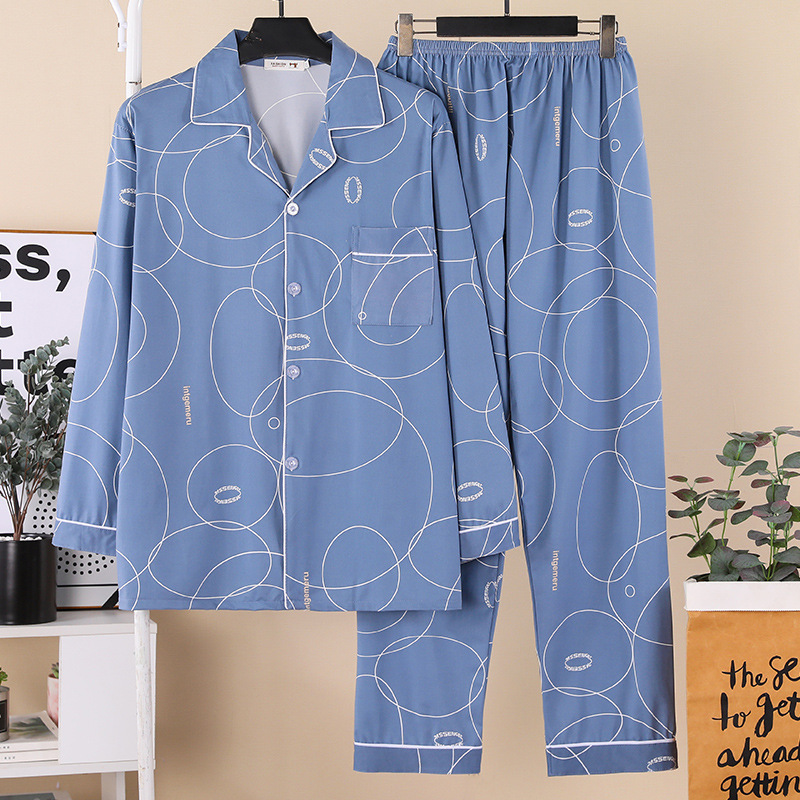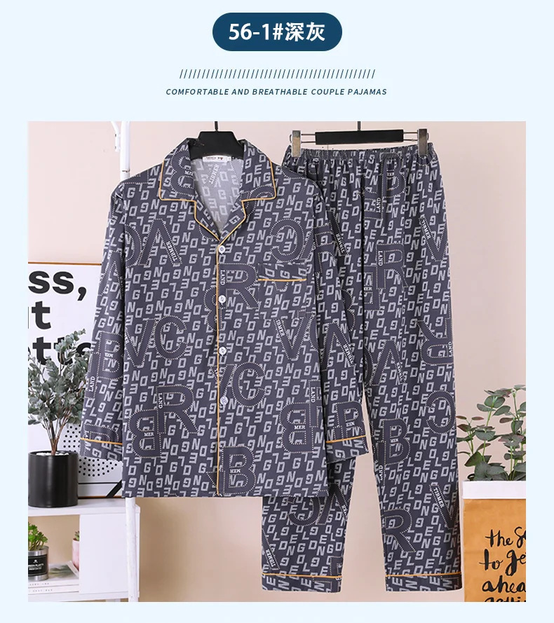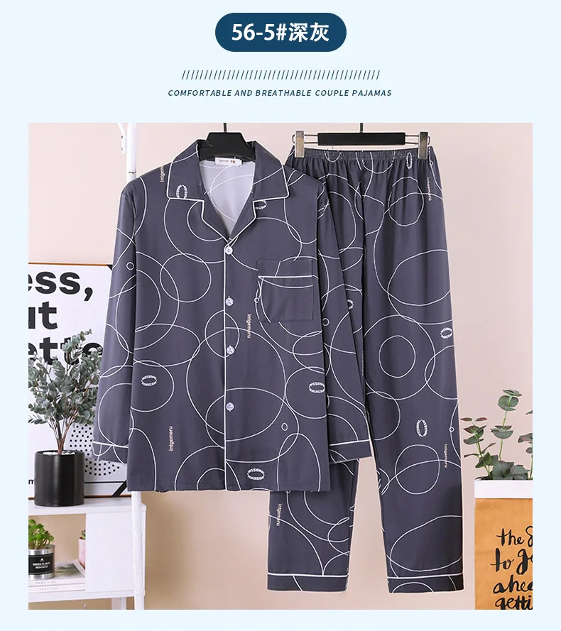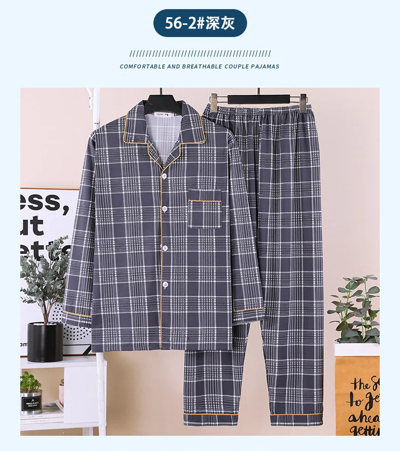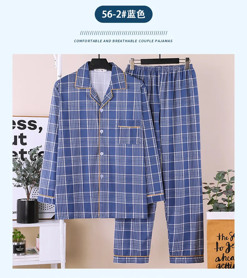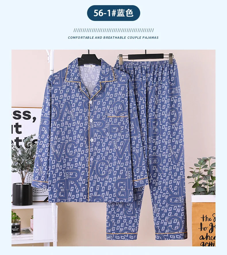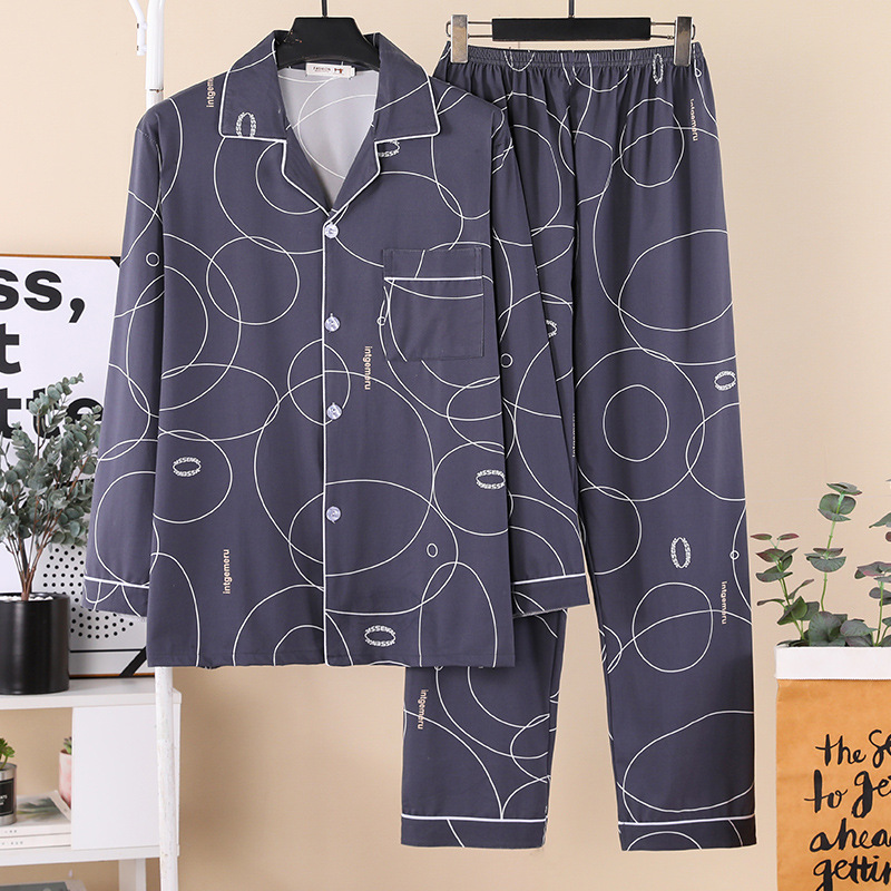 잠옷 남자의 봄과 가을 긴팔 중년 및 노인 아빠 카디건 얇은 플러스 사이즈 면 가정 옷 투피스 세트스토어 가기