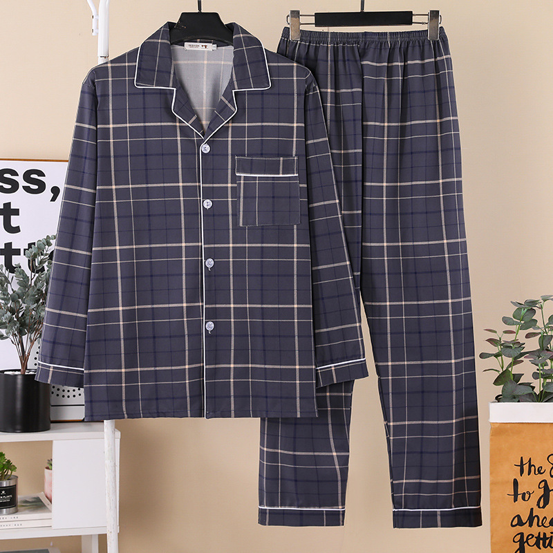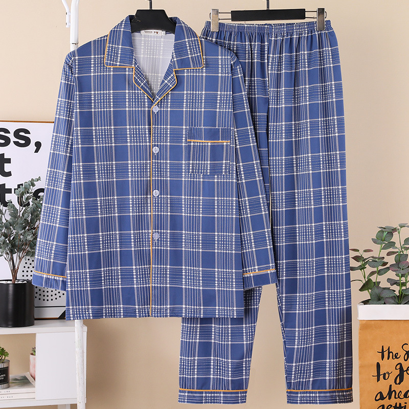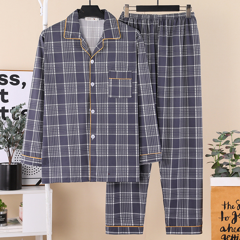 잠옷 남자의 봄과 가을 긴팔 중년 및 노인 아빠 카디건 얇은 플러스 사이즈 면 가정 옷 투피스 세트