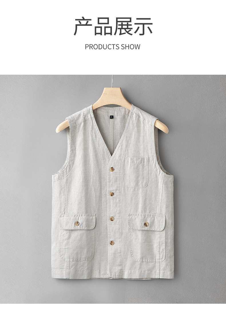 새로운 스타일 린넨 조끼 남자의 느슨한 플러스 사이즈 일본 스타일 린넨 면 캐주얼 조끼 청소년 V-넥 민소매 유행 탑스토어 가기
