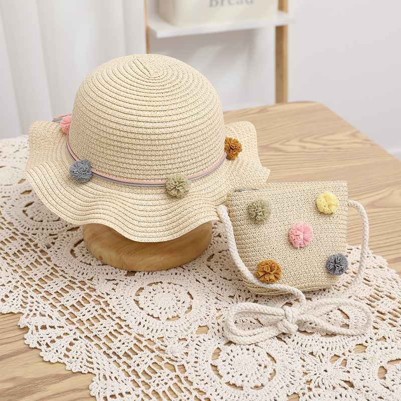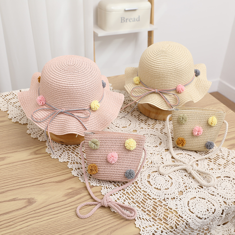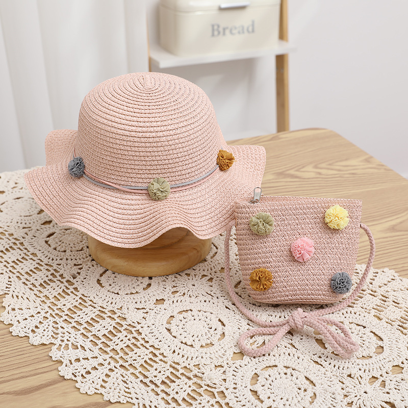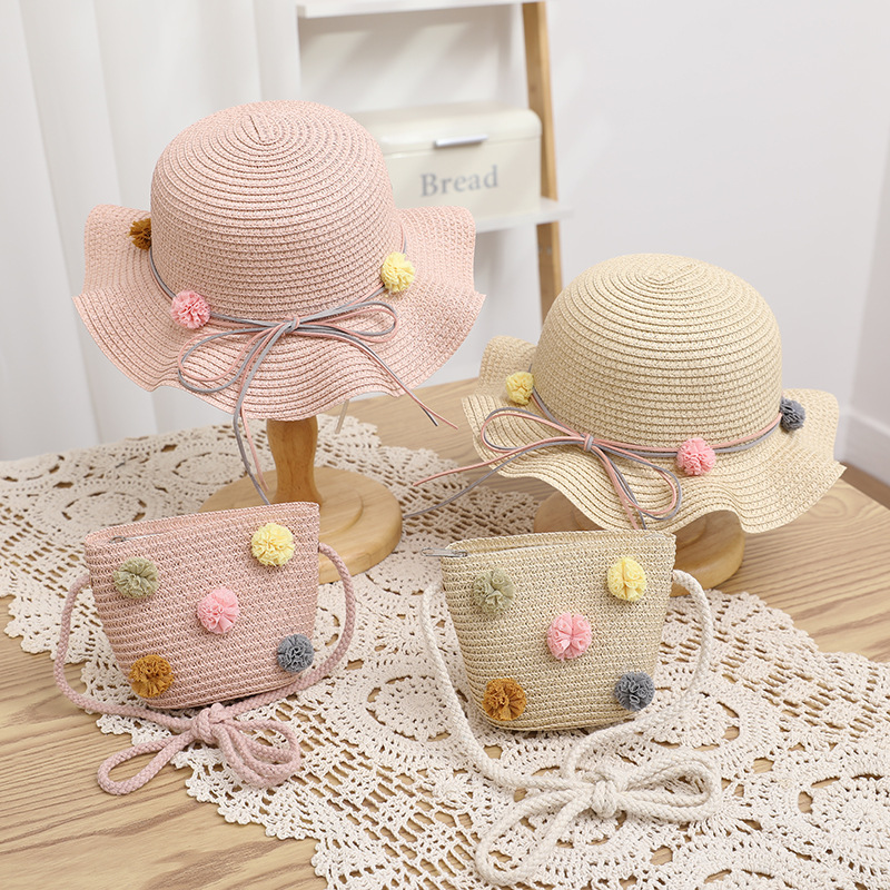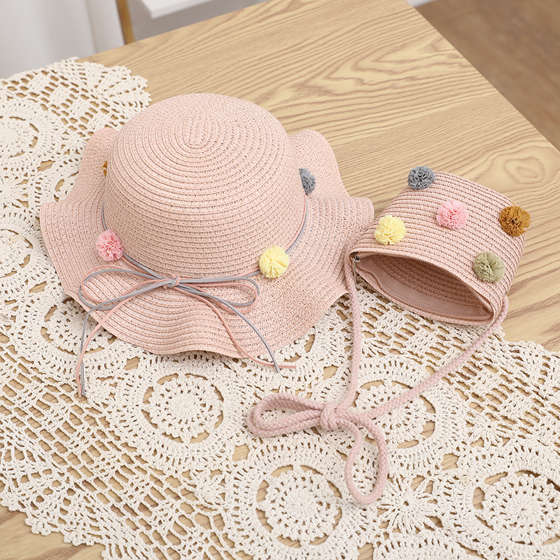 어린이 태양 모자 여름 여성의 큰 챙 자외선 차단제 너무 부모-아이 비치 여성의 가방 세트 직접 판매 머리카락의 세대