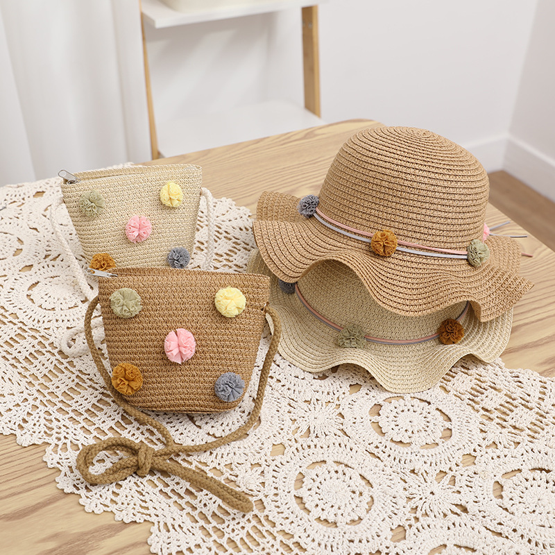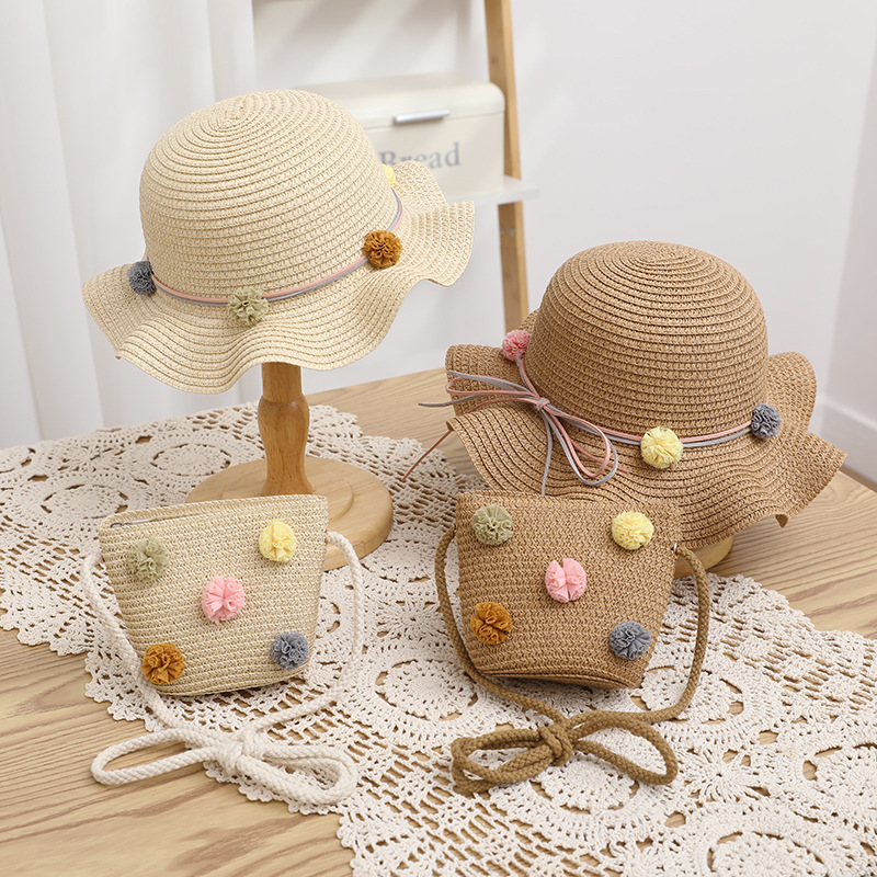 어린이 태양 모자 여름 여성의 큰 챙 자외선 차단제 너무 부모-아이 비치 여성의 가방 세트 직접 판매 머리카락의 세대스토어 가기