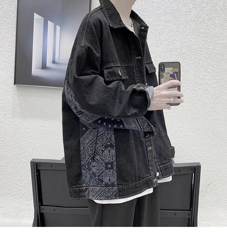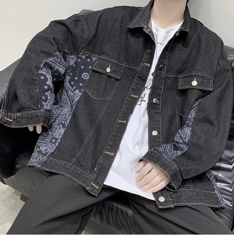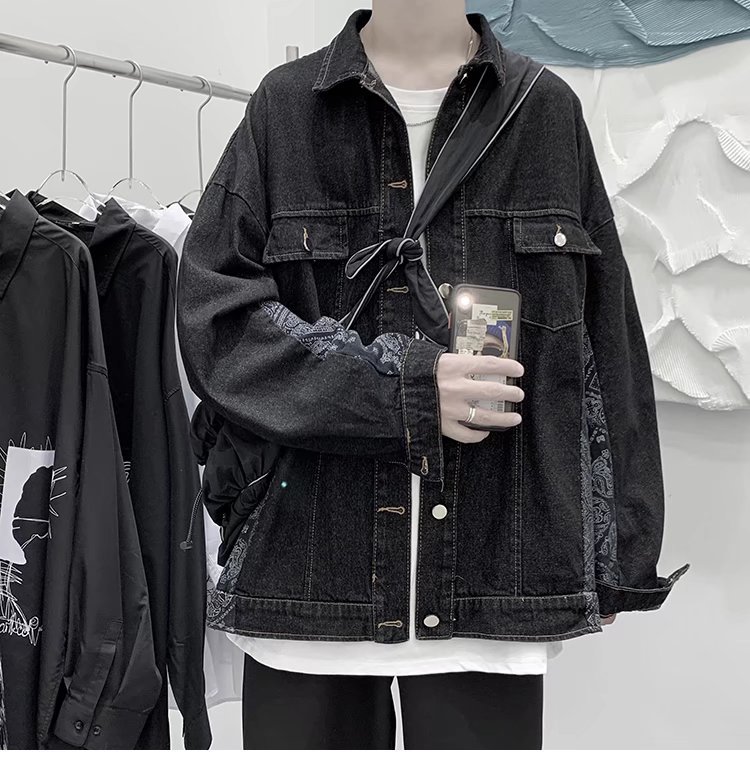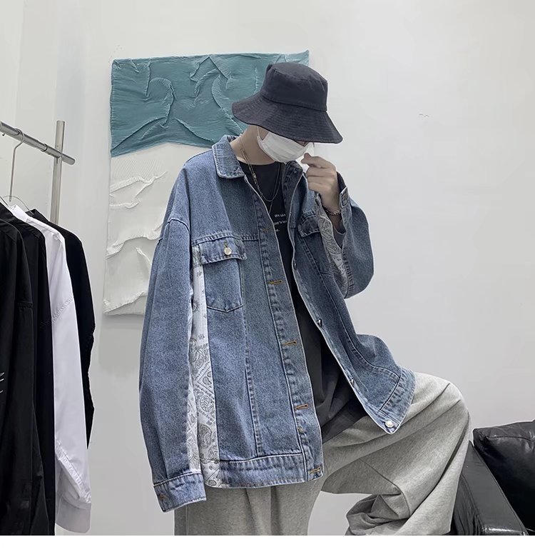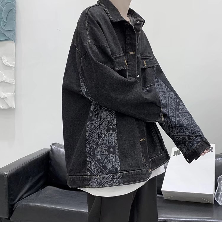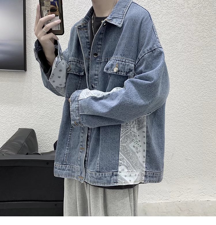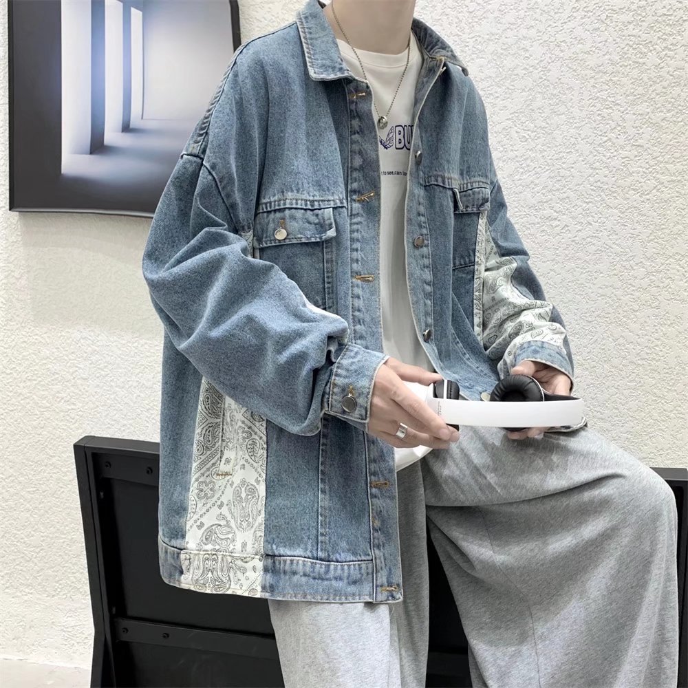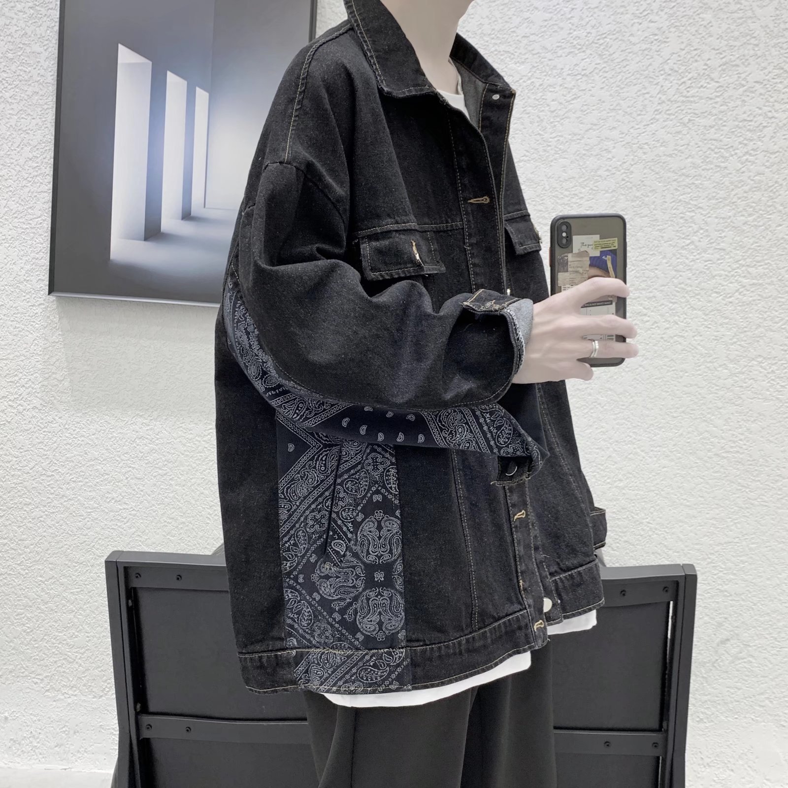 캐슈 플라워 데님 자켓 남성 자켓 한국 유행 스티치 재킷 봄과 가을 하이 스트리트 특대 의류스토어 가기