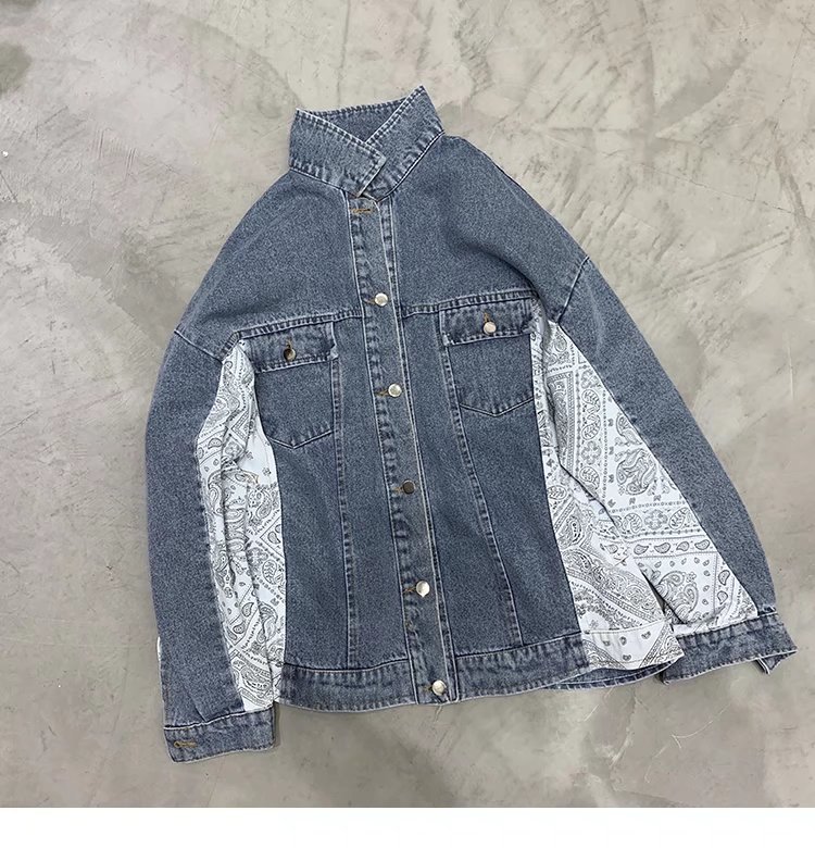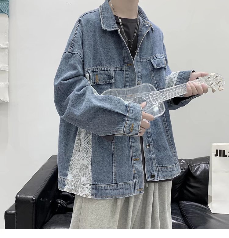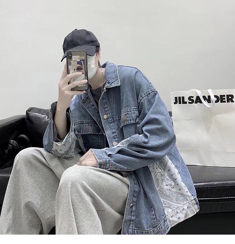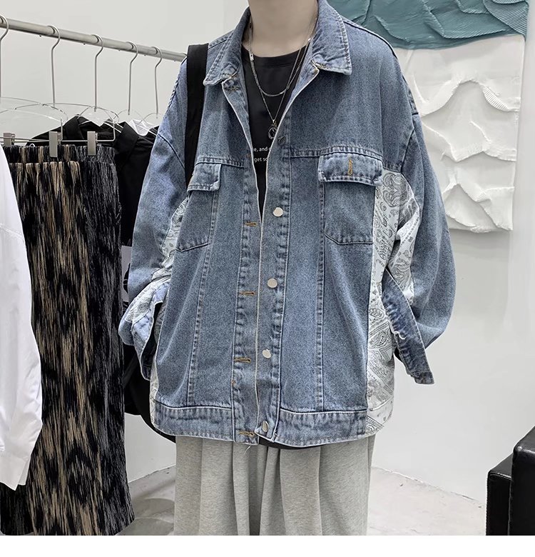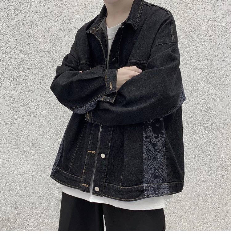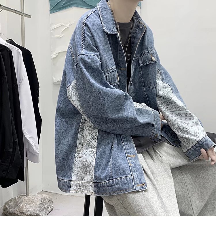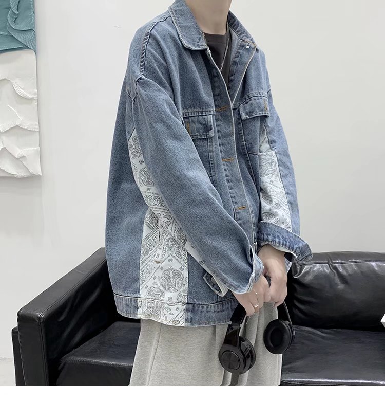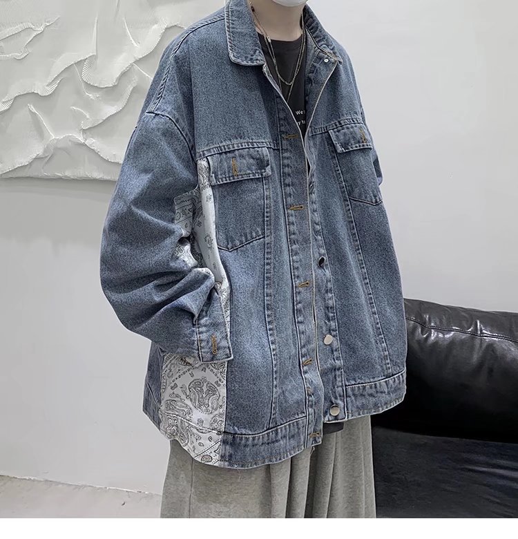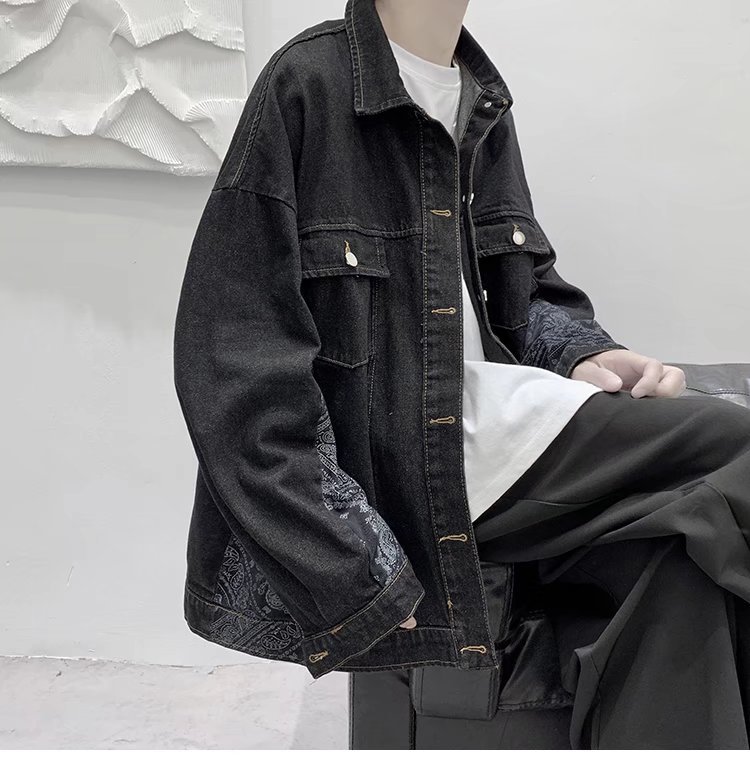 캐슈 플라워 데님 자켓 남성 자켓 한국 유행 스티치 재킷 봄과 가을 하이 스트리트 특대 의류스토어 가기