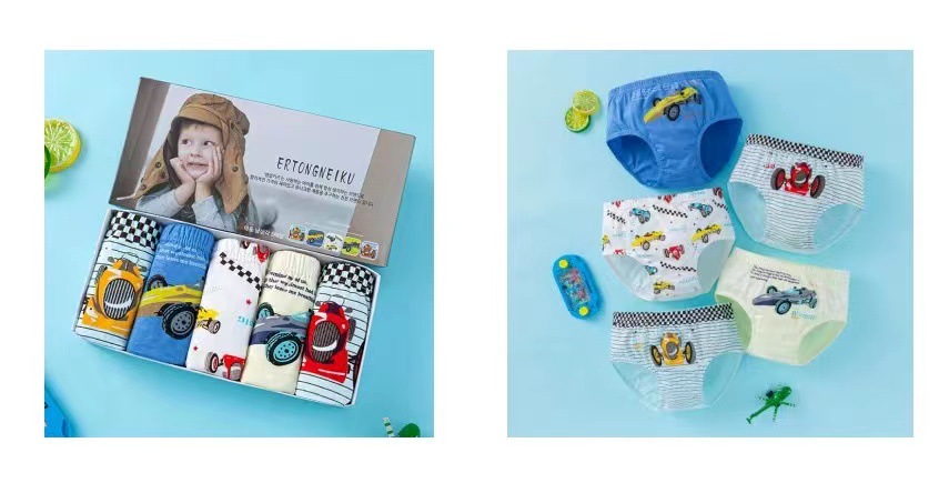 한국 신상품 박스 어린이 팬티 소년을위한 순면 빵 바지 큰 어린이 만화 반바지 공장 상점스토어 가기