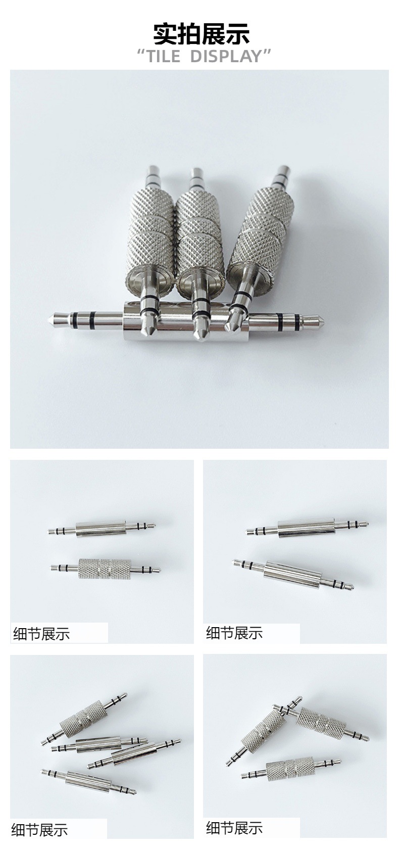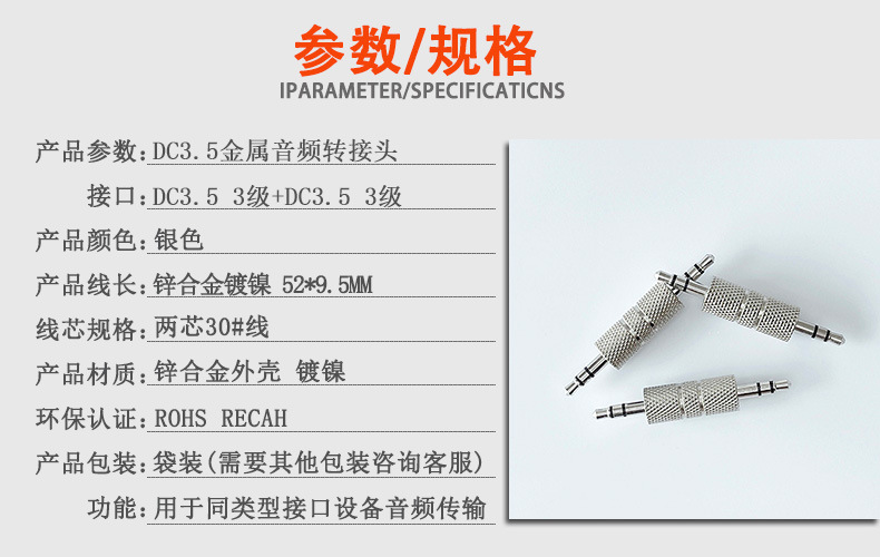 공장 다이렉트 메탈 어댑터 아연 합금 자동차 플레이트 남성 대 남성 스트레이트 헤드 스테레오 더블 3.5dcaux 오디오 헤드스토어 가기