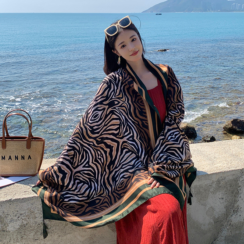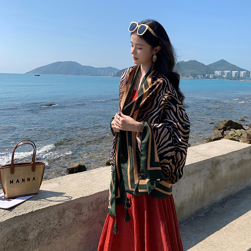 하이난 휴가 여행 자외선 차단제 그늘 대형 숄 패션 얼룩말 패턴 모든 매치 롱 비치 타올 여성 여행 사진스토어 가기