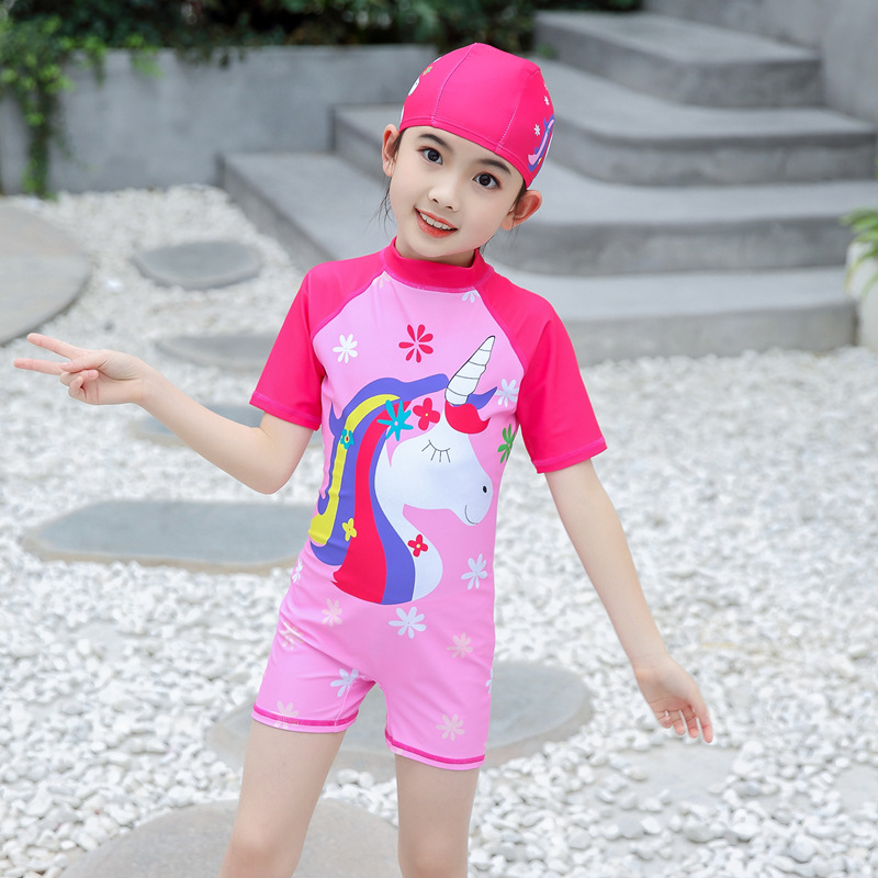 새로운 어린이 수영복 여아 원피스 플랫 수영복 큰 어린이 귀여운 아기 한국 속건 수영복 도매스토어 가기