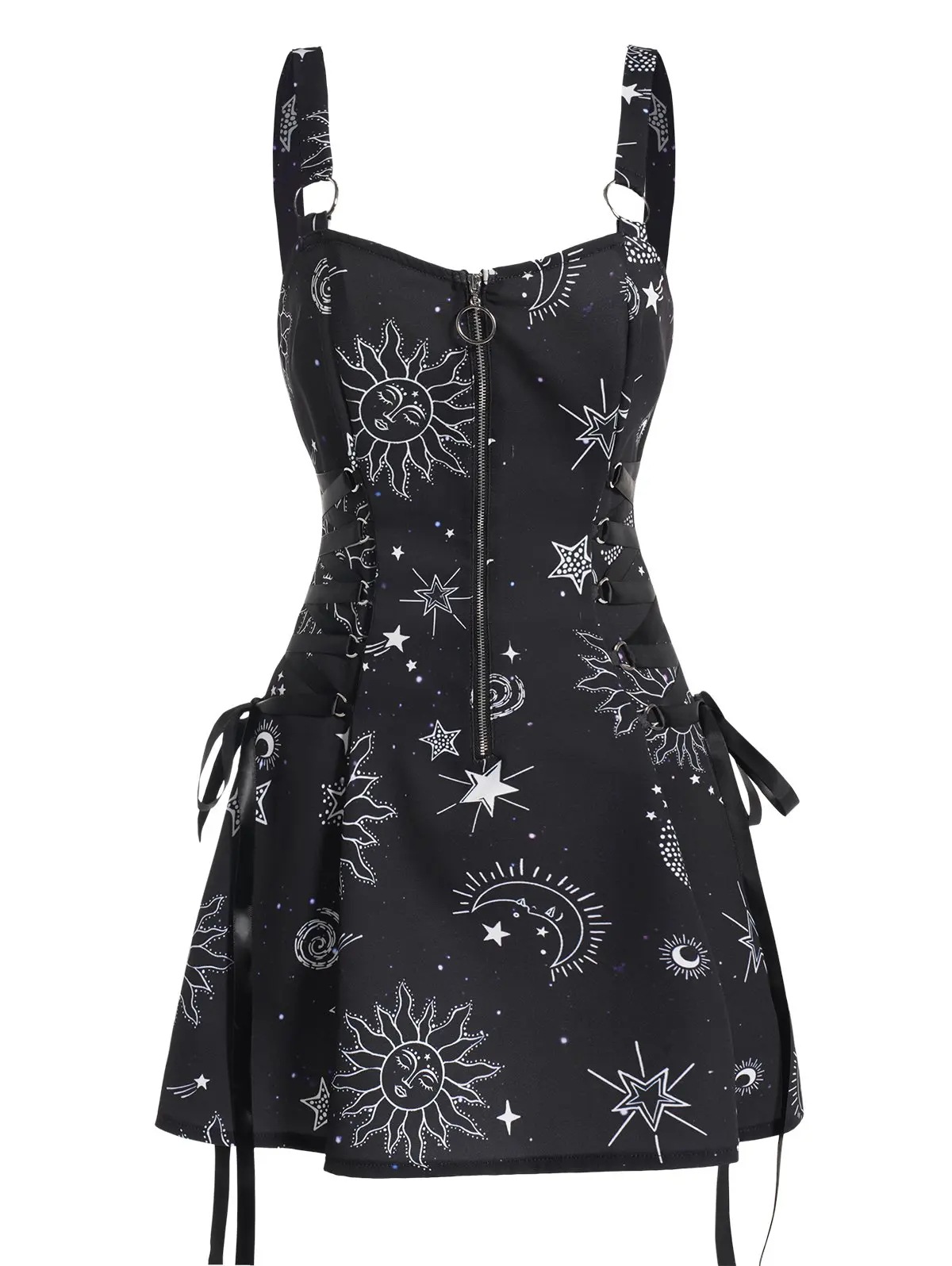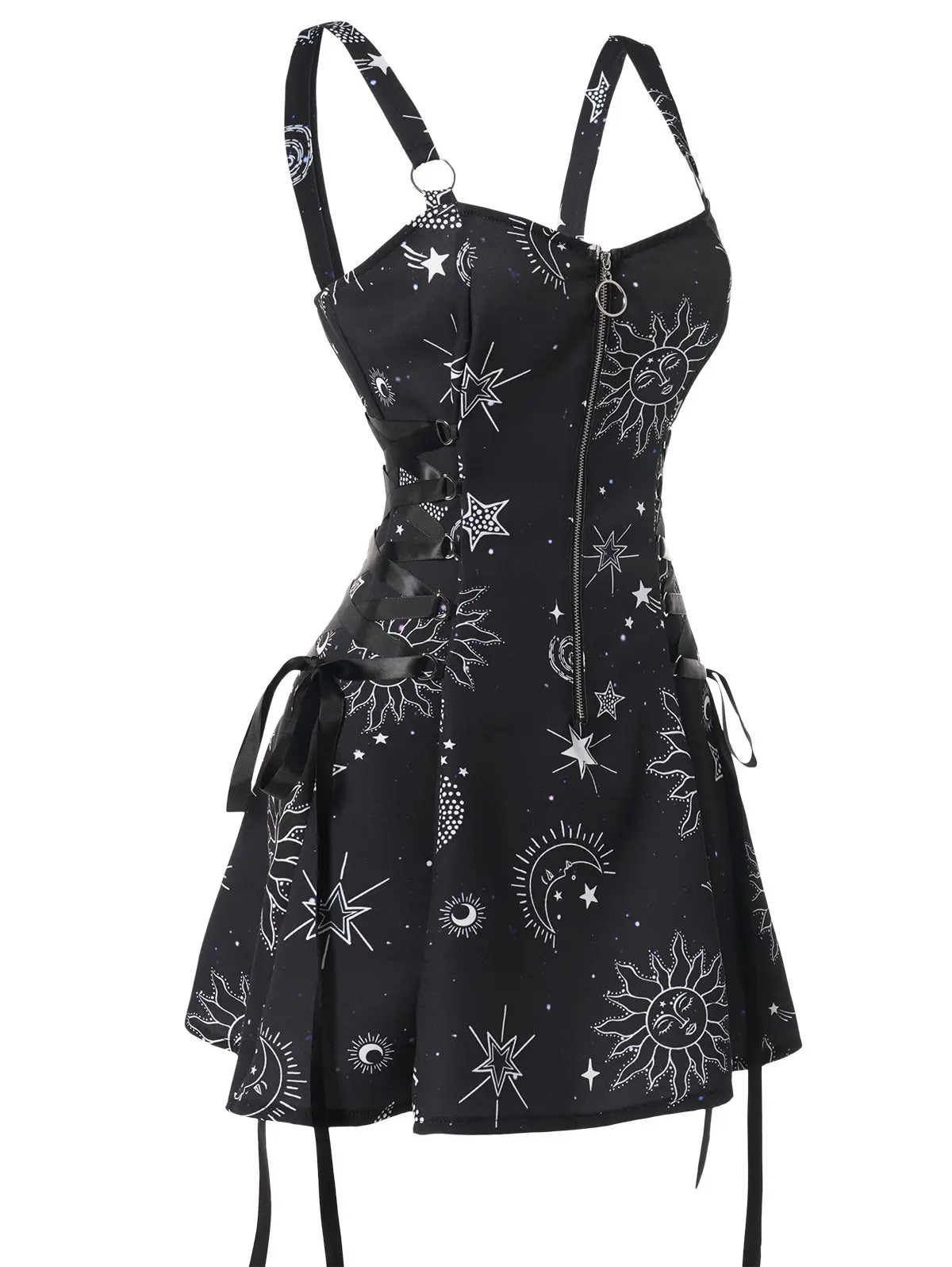 유럽과 미국 아마존 2023 새로운 할로윈 프린트 스트랩 등이없는 섹시한 허리 A-라인 미니 원피스스토어 가기