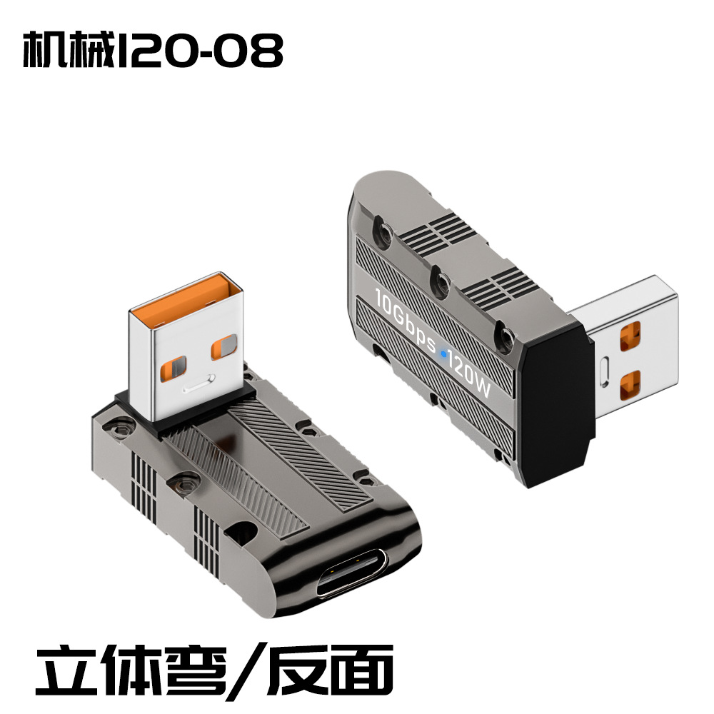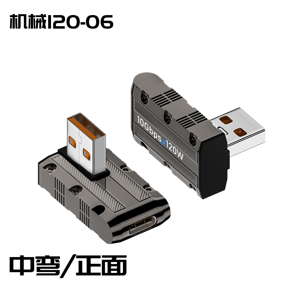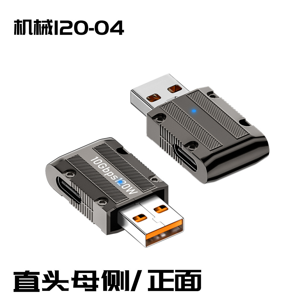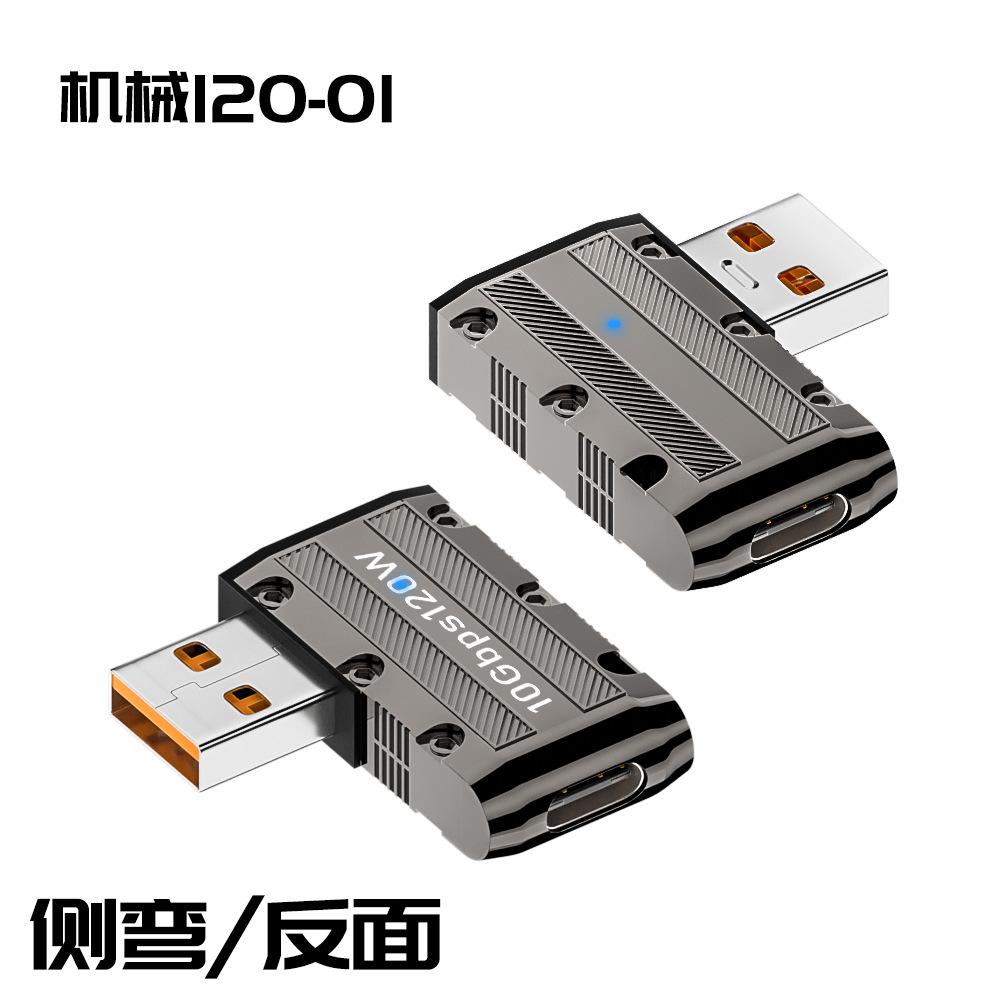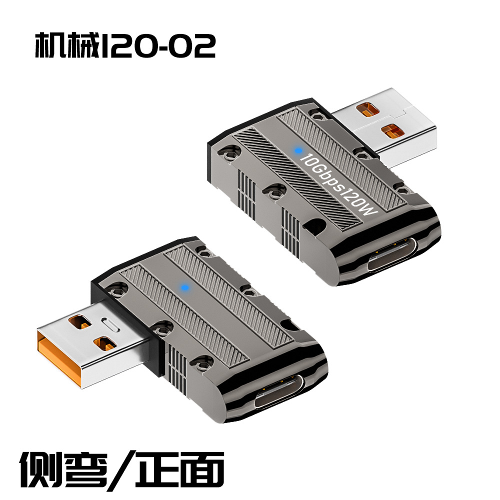 타입-c to USB 어댑터 아연 합금 쉘 메카 바람 휴대 전화 컴퓨터 어댑터 초고속 충전 120W